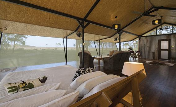 bungalow ensure the space is kept fresh and cool. Being surrounded by these semi-transparent screens provides an immersive experience in which guests can hear, see, and almost touch the surrounding wildlife and wilderness, without having to leave the bed!
