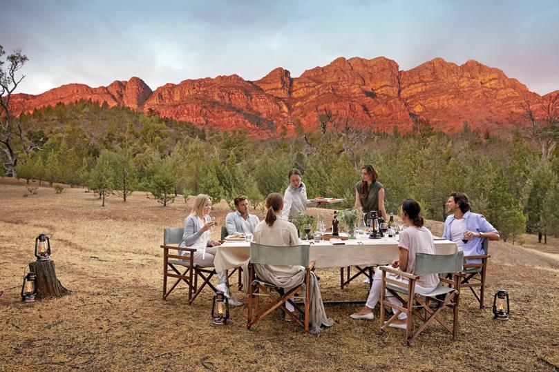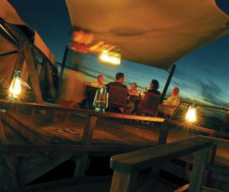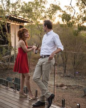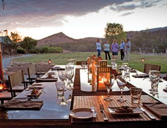 Meals are shared with fellow guests at the lodge or on the deck, and the three-course dinners are served by candlelight and lantern light to take in the breathtaking beauty of the starry night sky. The resident chef prepares a contemporary menu featuring seasonal local produce, with hints of bush food and local fresh fish. The beverage list features excellent Western Australian wines alongside other regional wines, beers, spirits, and a wide selection of soft drinks and juices.