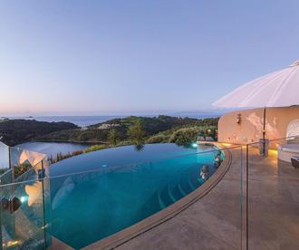 Built cliffside with breathtaking sea views over Owhanake Bay, Delamore Lodge on Waiheke Island is a favourite destination for lovers of luxury travel. Inspired by the Mediterranean with a unique New Zealand flavour, this exclusive lodge is designed in the shape of a traditional Māori fish hook (matau) and moulded into the hillside.