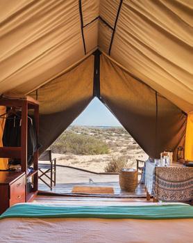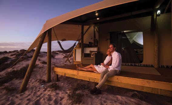Each of the 16 safari tents is designed to blend with the environment for the most natural experience possible. Sitting on raised platforms, each tent is a spacious, airy oasis of calm and offers stunning views of the surrounding bush, pristine beach, and Indian Ocean. Handmade jarrah beds are fitted with luxurious cotton linens for an incredible night’s sleep, and the ensuite eco-bathrooms feature native herb soaps and ecologically sound shampoos.