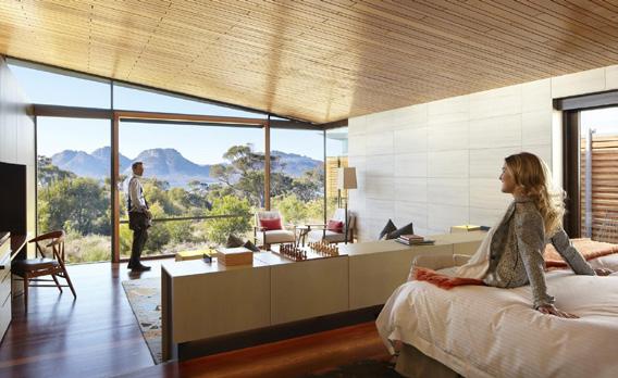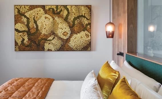 Each of the 18 guest rooms is a sanctuary of elegant comfort, with views across the distinct sandstone country above the gorge – lush gullies full of flora inhabiting giant cracks in the gorge walls, and broad valleys meandering through high and low country. The rich colours of Indigenous artwork from local artists blend with and complement the rooms’ modern design and fittings.