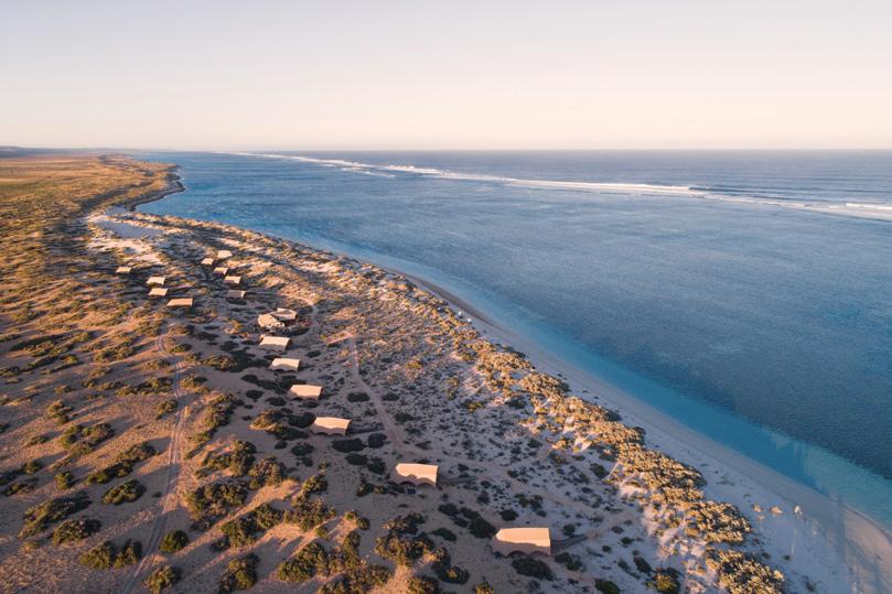• Right off the shores of the camp, the UNESCO World Heritage-listed Ningaloo Reef is home to more than 500 species of colourful fish, 250 coral species, rays, and turtles. Here, guests have the opportunity to swim alongside majestic whale sharks and magnificent humpback whales, with expert guides tailoring activities to suit the weather and tides.