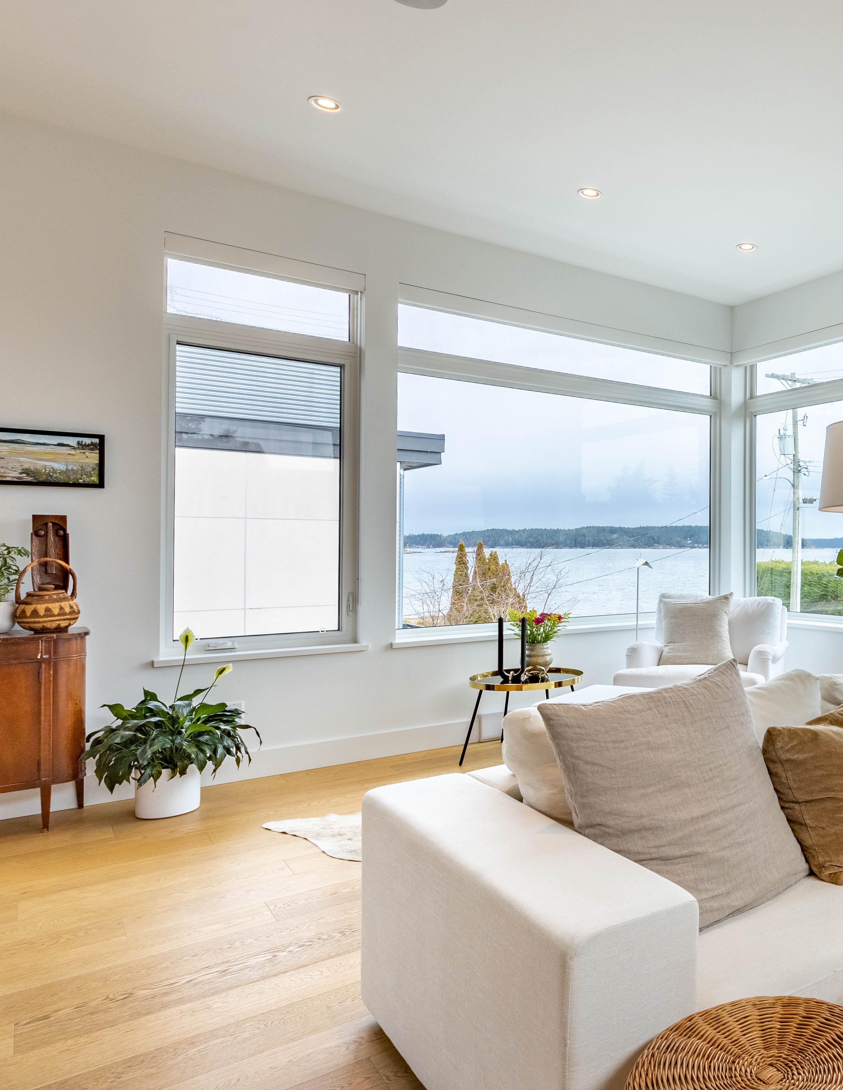• 2017 Sidney waterfront home with spectacular ocean vistas, steps from the beach in Roberts Bay