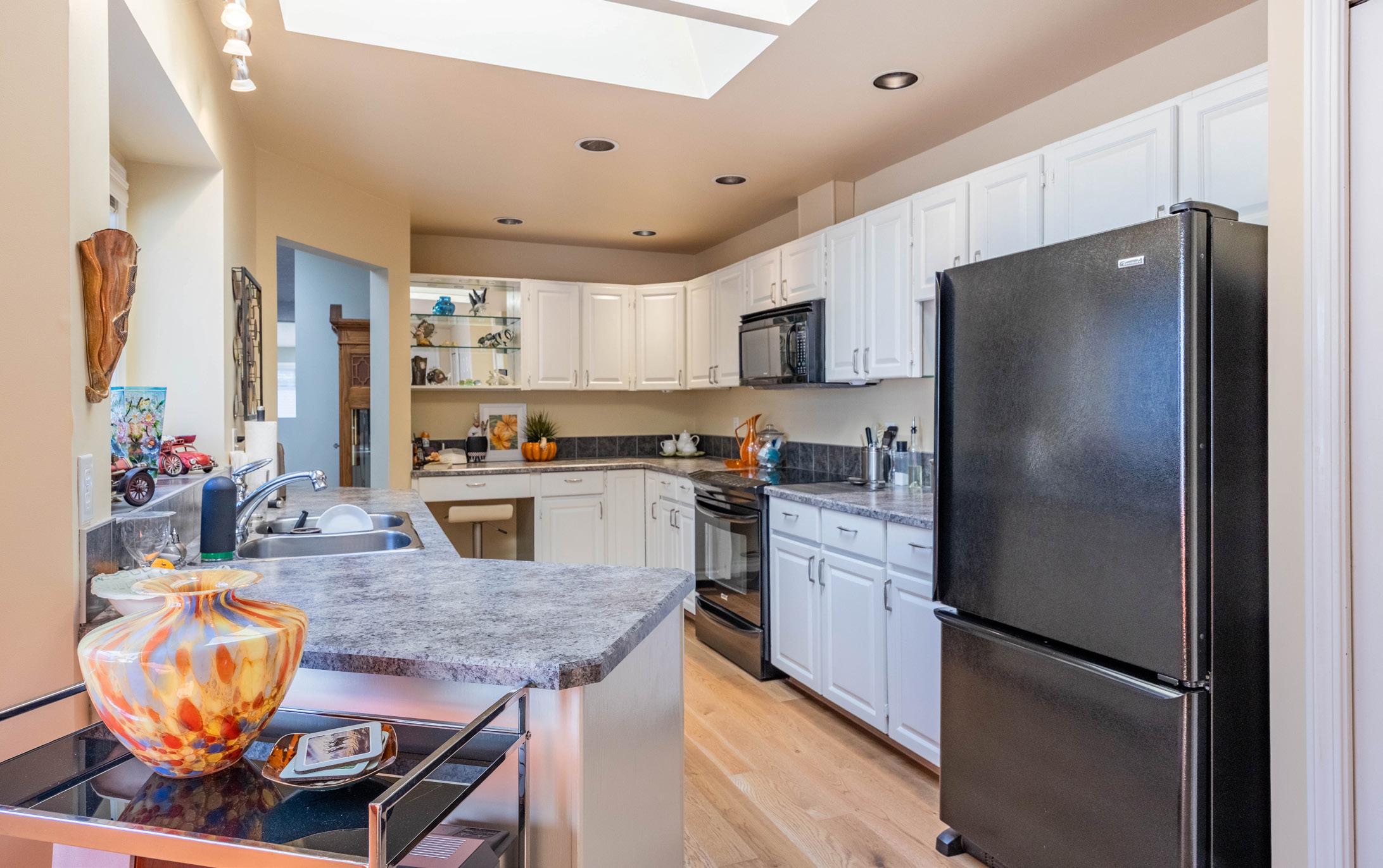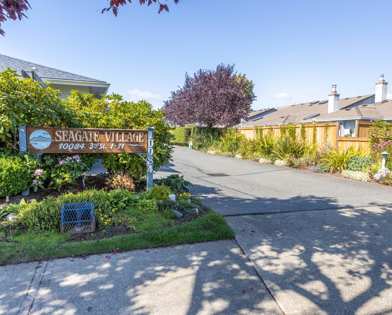 Experience luxurious 1600 sq ft living in this one-level 55+ townhouse near beaches & downtown Sidney. 2 beds, 2 modern baths. Cozy family room off kitchen. Updated kitchen for delightful cooking. Gas fireplace for warmth. Bright with skylights & wood floors. Private dining room. South-facing