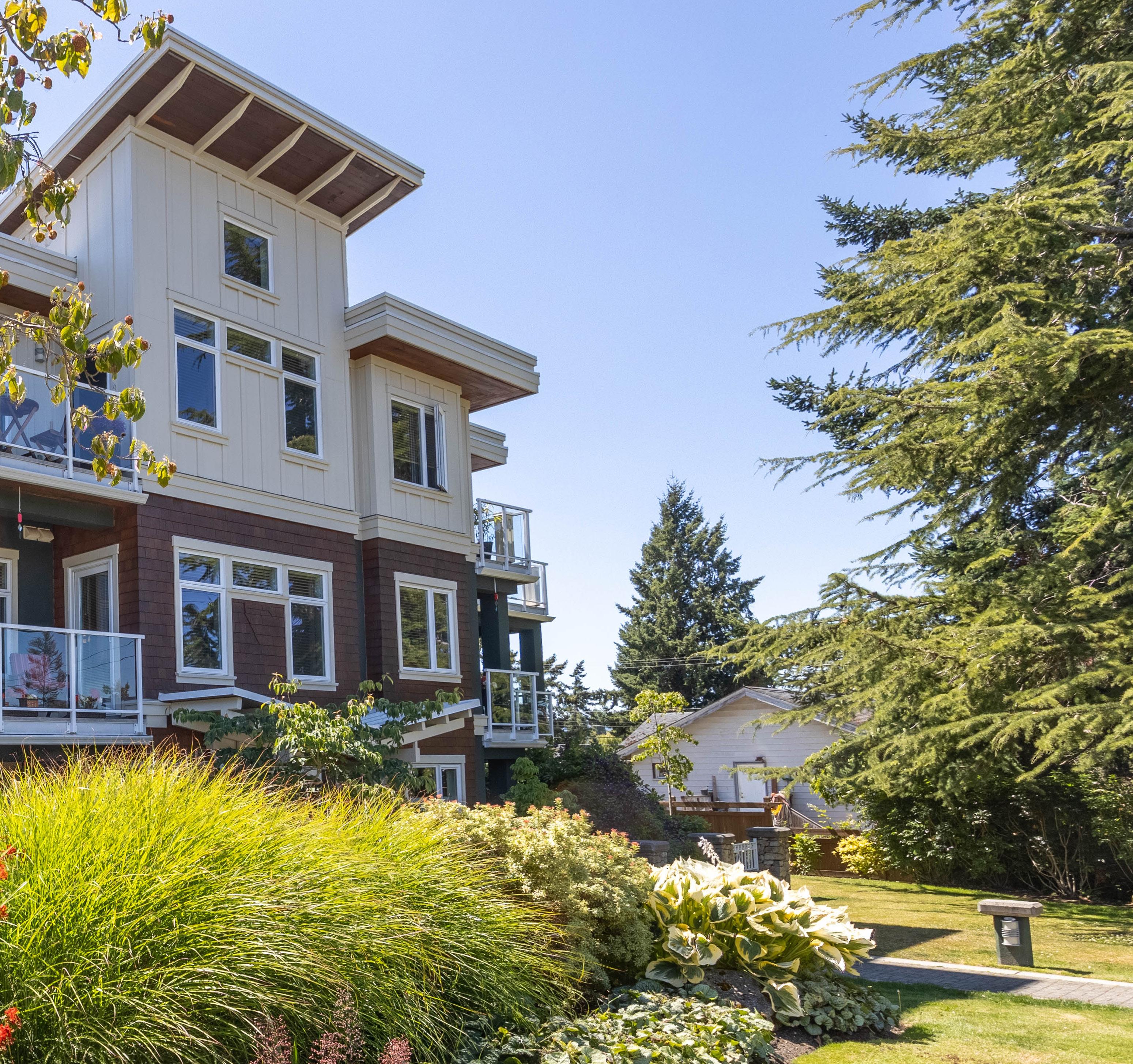 Welcome to Pacific Walk, a stunning West Coast Contemporary complex, located in the desirable & quiet Robert’s Bay area of Sidney. This 2 bed, 2 bath 1013 square foot oasis boasts contemporary finishings & offers the perfect balance of luxury & coastal living. Hardwood floors flow throughout the open concept living space. The modern kitchen features granite counters & SS appliances, perfect for the aspiring chef in you. Primary is spacious & offers a spa like ensuite. Follow the sun or the shade w 2 balconies or