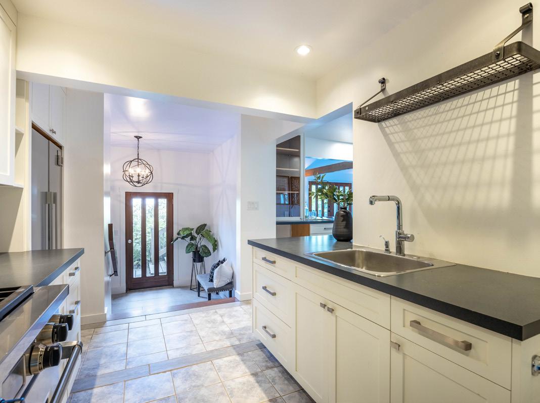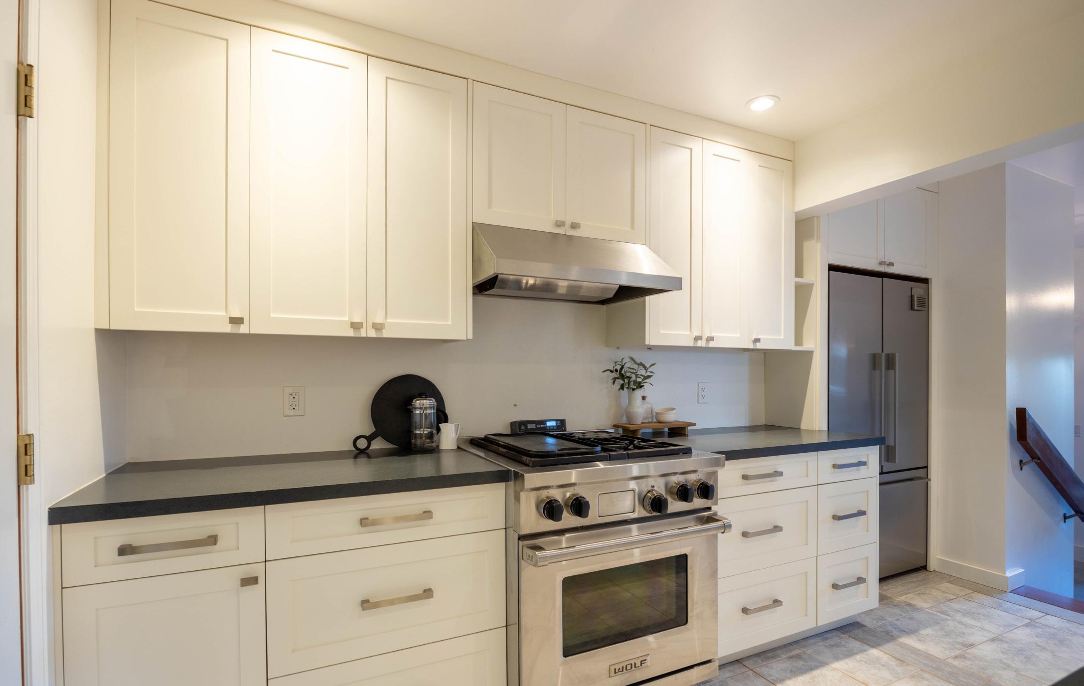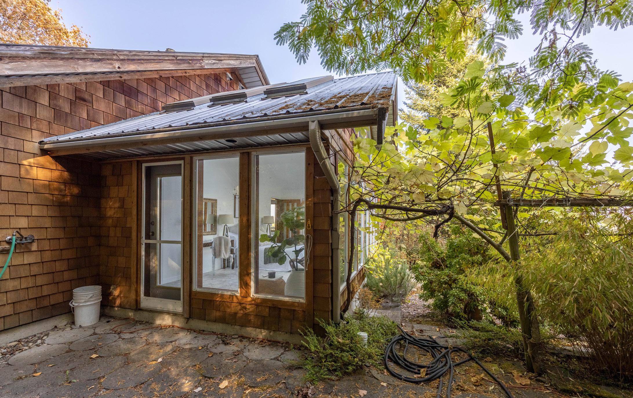 has been updated with granite countertops, crisp white cabinetry, stainless steel appliances, Wolf gas stove and spacious pantry. The bath room has also been updated and offers a very inviting soaker tub. Beautiful wood windows and doors, attractive shingled exterior and hot water on demand. Attached two car garage could eas ily convert to additional living space if so desired.