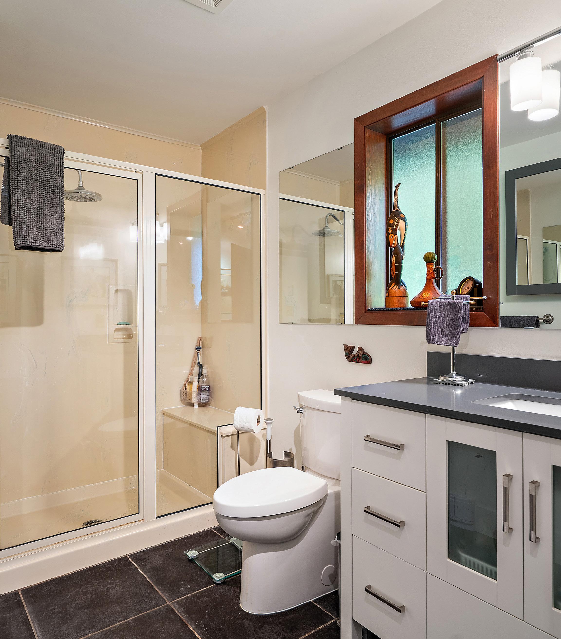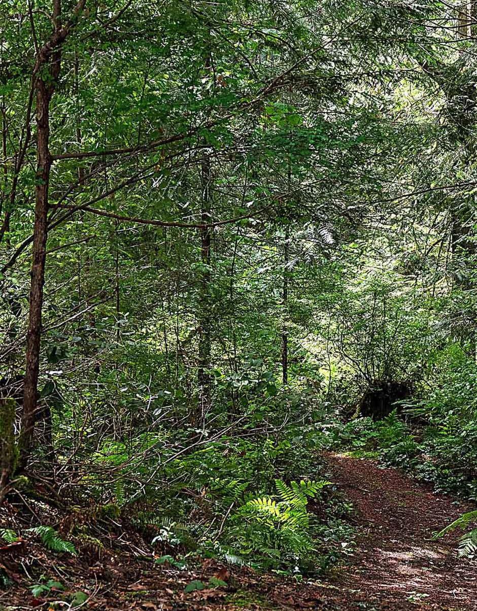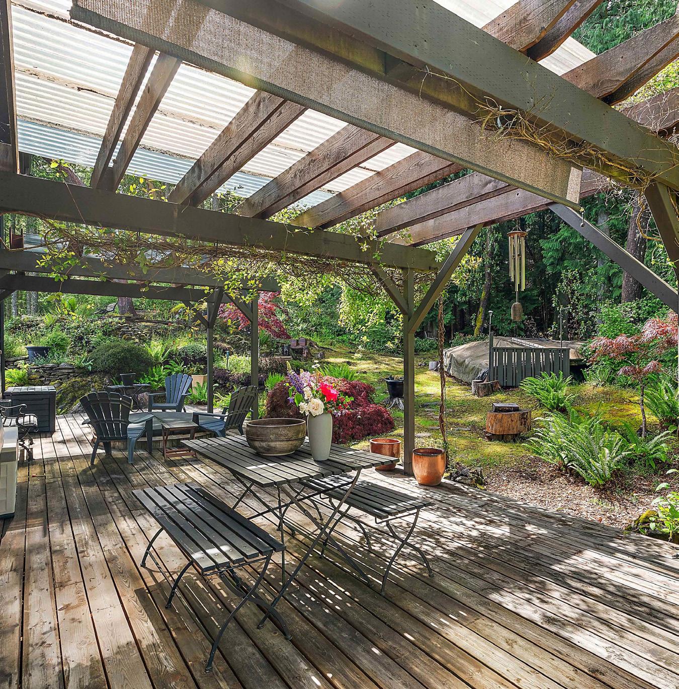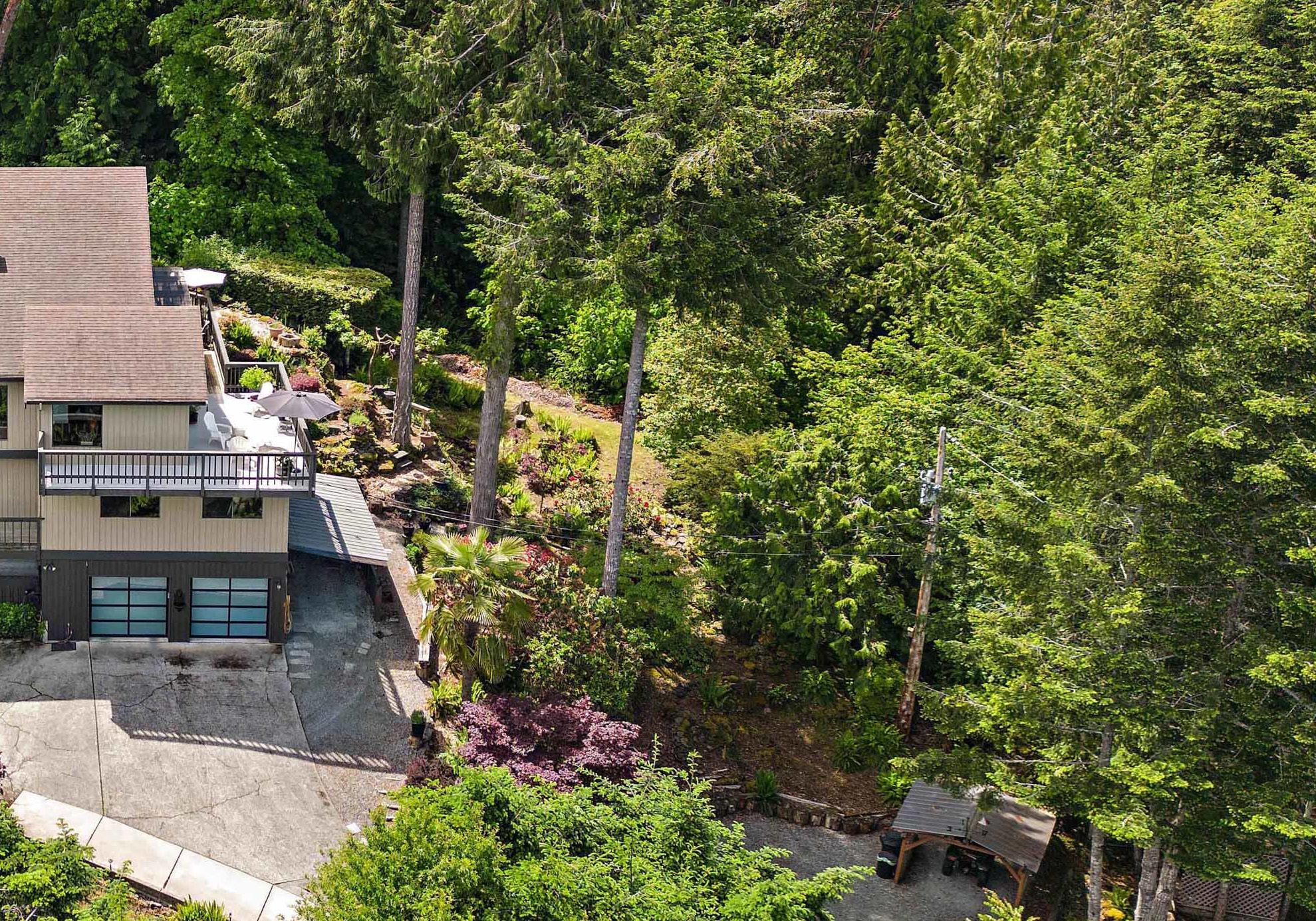 Double car garage, workshop, carport and additional parking for multiple vehicles. No grass to mow on this sloped easy care natural woodland. Situated close to Sidney, airport ferry terminal.