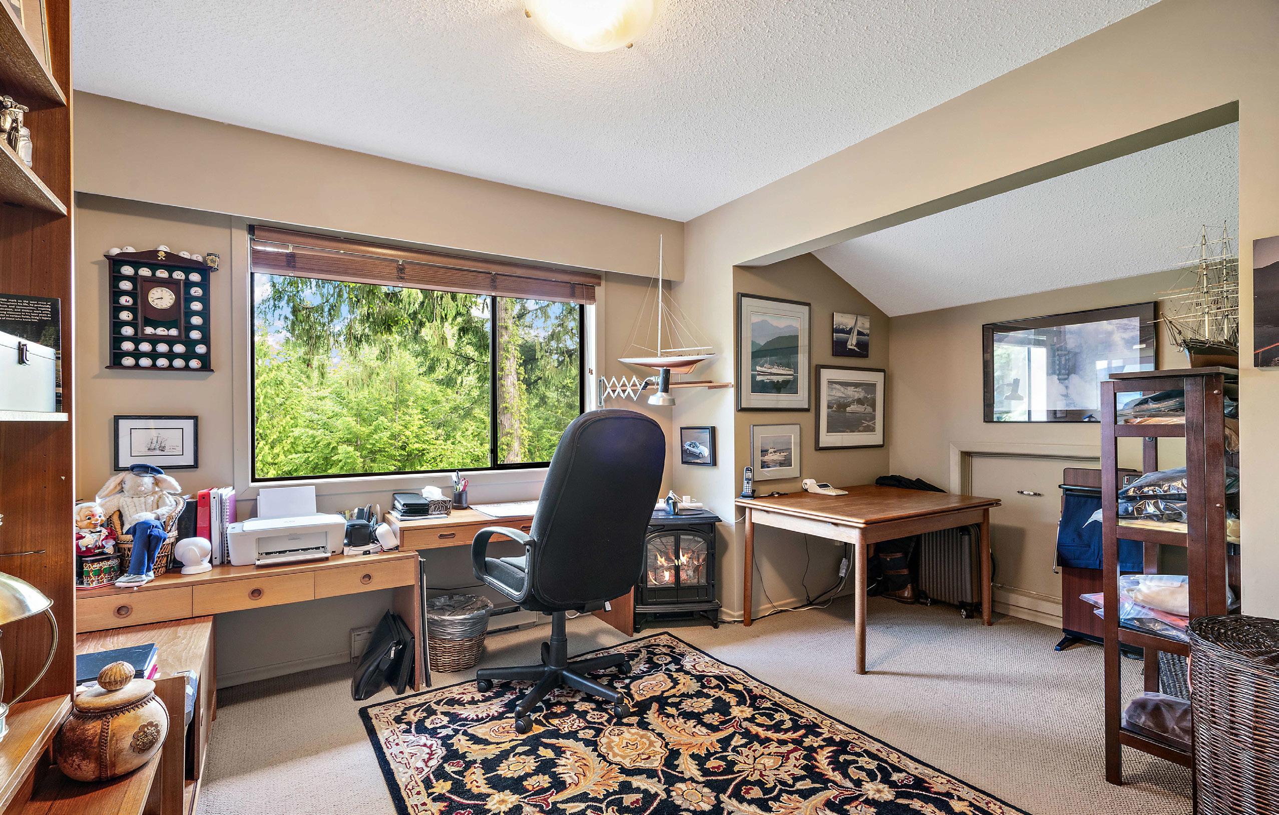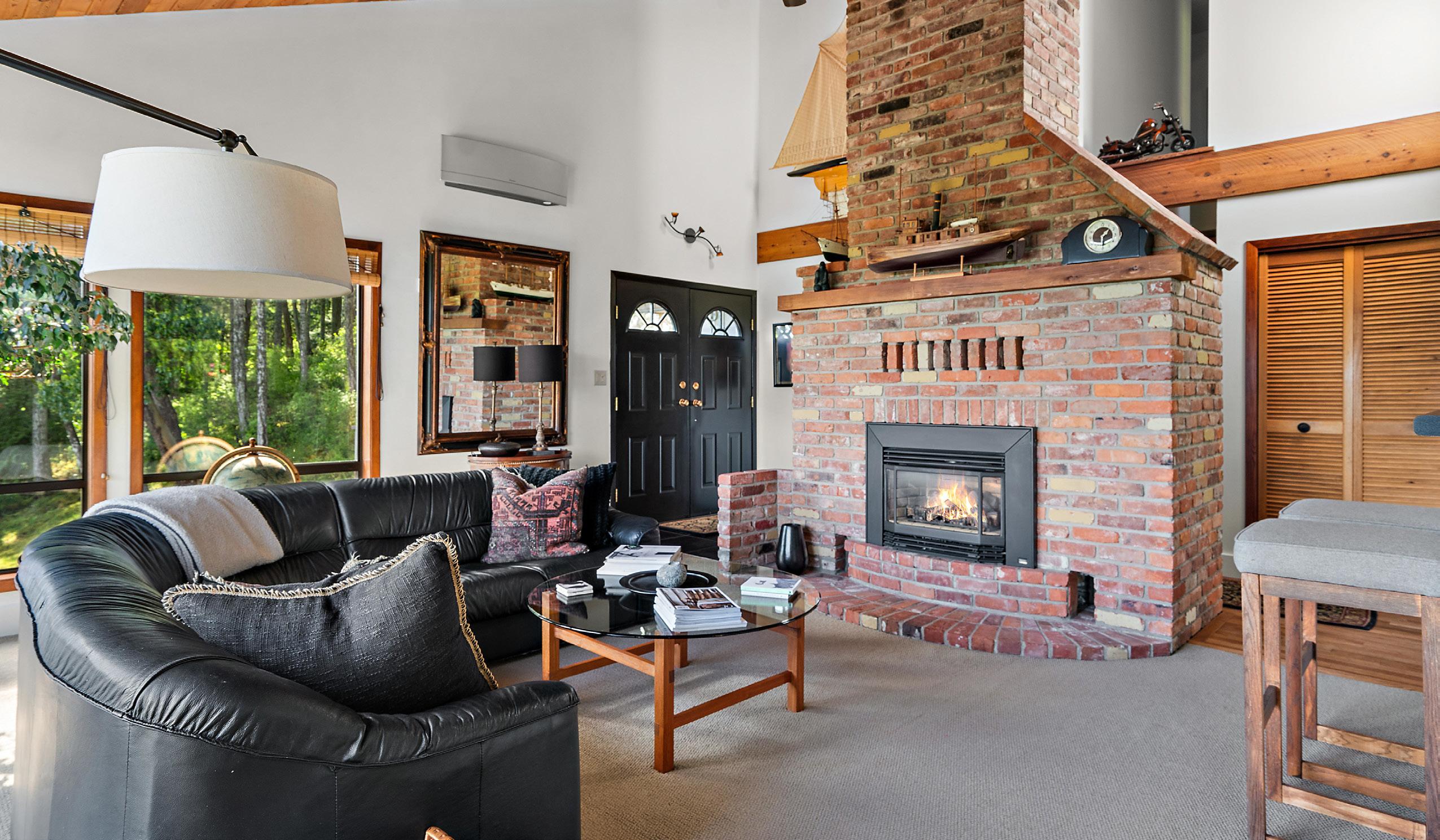 spacious home office. Features ductless heat pumps, floor to ceiling brick gas fireplace, vaulted ceilings in LR and Primary BR.