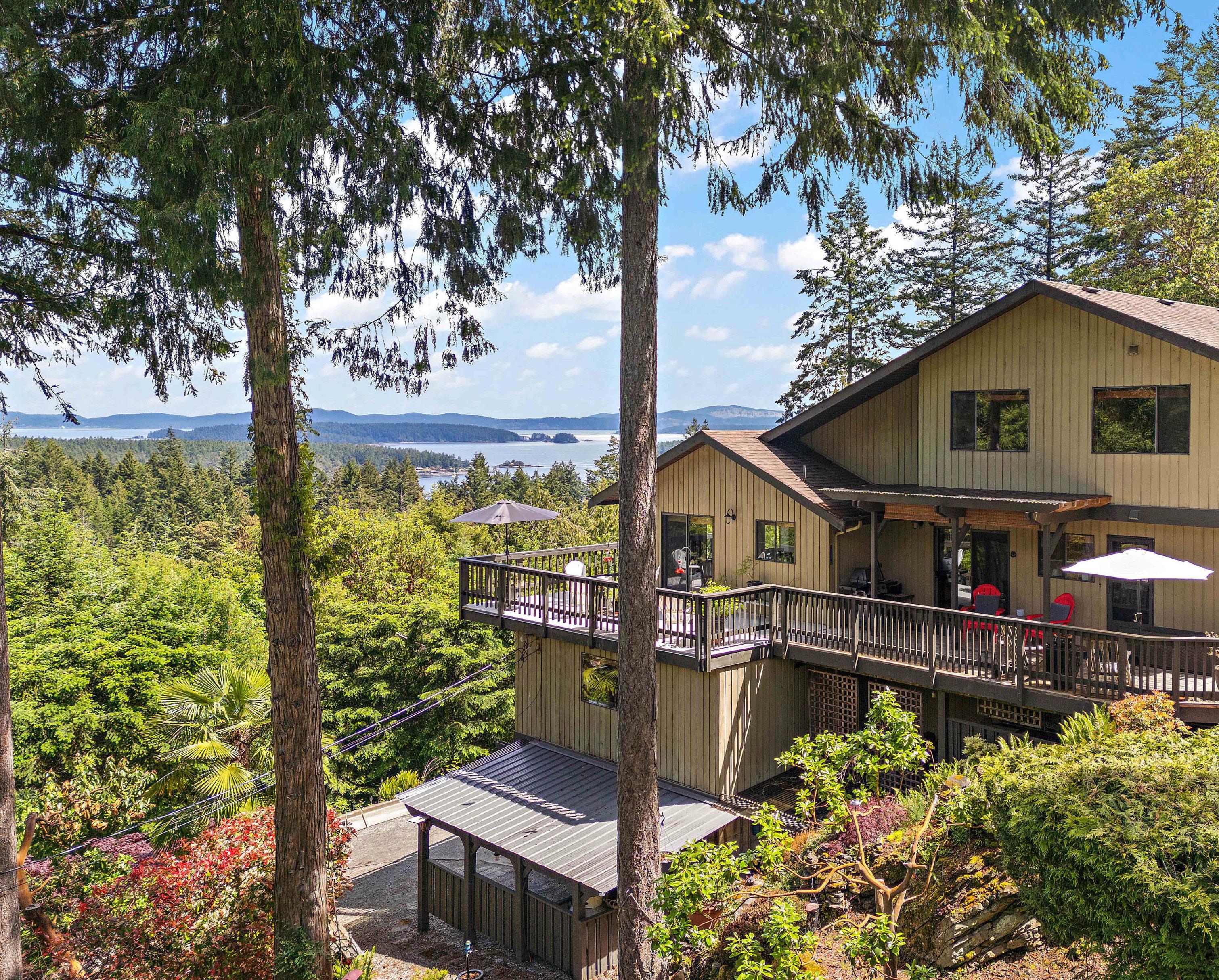 High up on a private 3.6 acre property in North Saanich, spectacular ocean views of Satellite Channel and the Gulf Islands, you’ll find this multilevel west coast contemporary home.