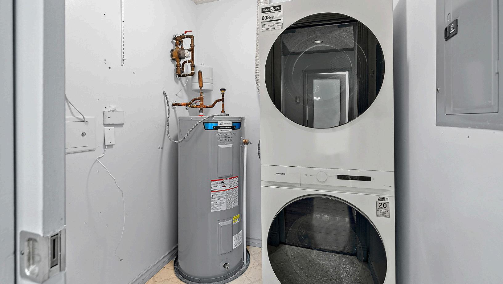 There are two generously sized bedrooms and two full bathrooms, including a well-
