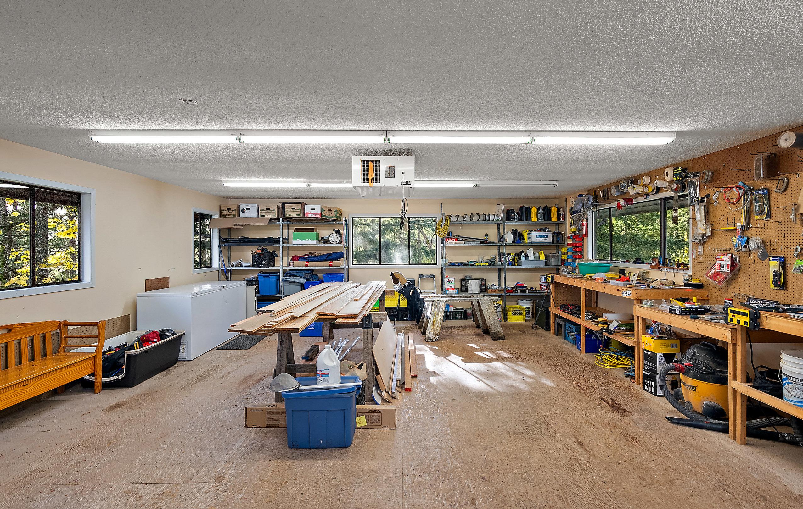 Outdoors, this property is a dream for hobby farmers and equestrian enthusiasts alike. The custom-built pole barn features a hay loft, & the fenced pasture is suitable for horses, cows, or sheep. Additional infrastructure includes a pig pen, a chicken coop, & covered parking stalls—all ready for your rural lifestyle. A detached triple garage with an impressive 700 sq. ft. workshop above offers endless possibilities for hobbies or a home-based business.