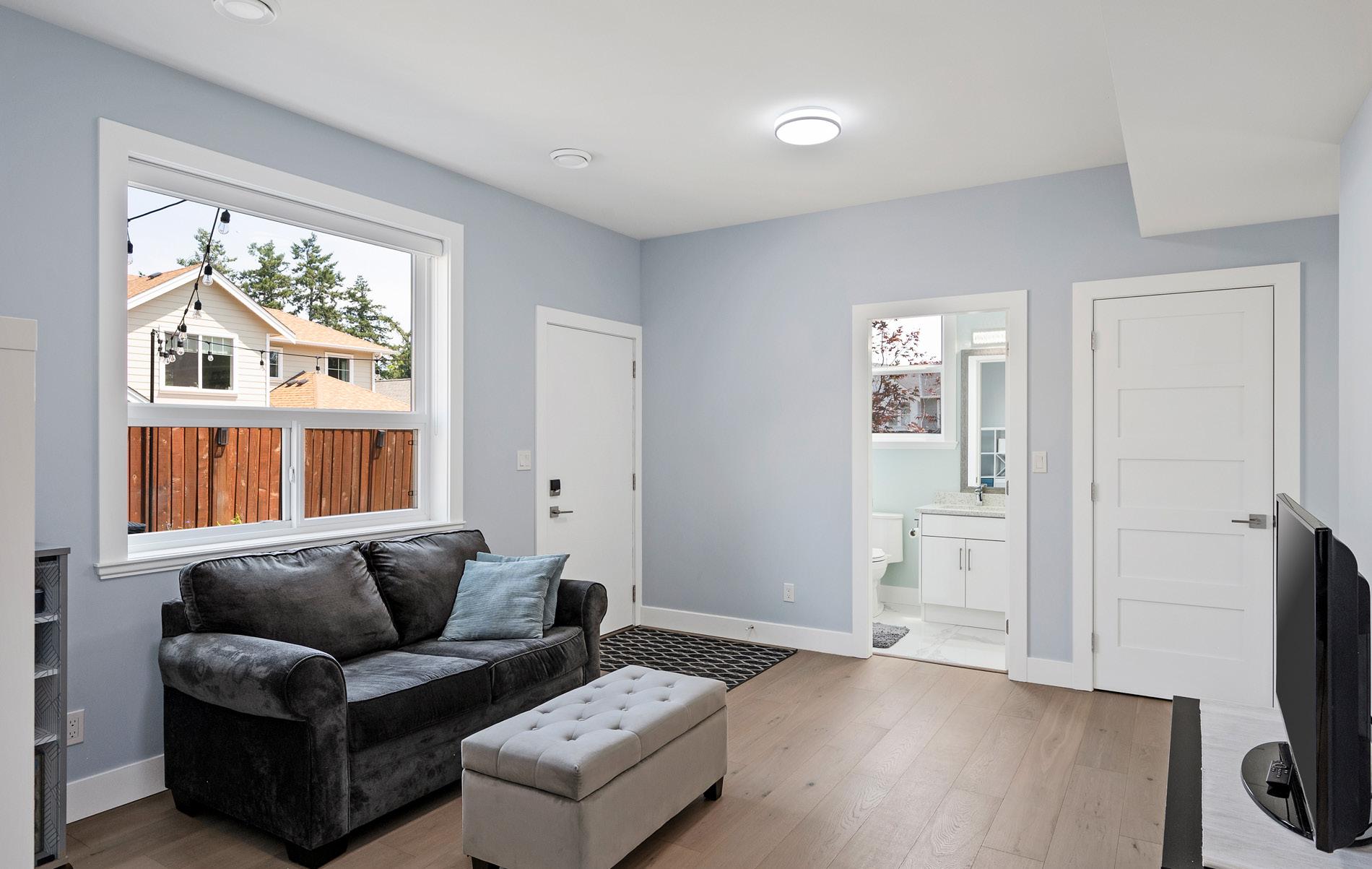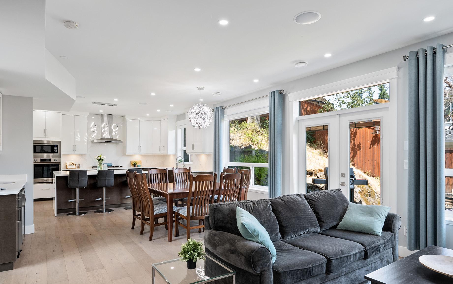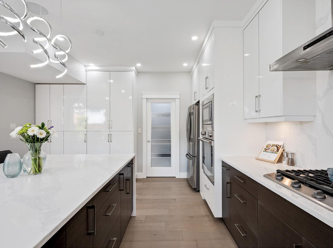 modern home nestled in beautiful View Royal. Grand entrance with hardwood staircase and glass railing. Large windows flood the home with natural light. Chef’s kitchen with huge quartz island and counters, full-height cabinets, stainless steel appliances and bonus Spice Kitchen!