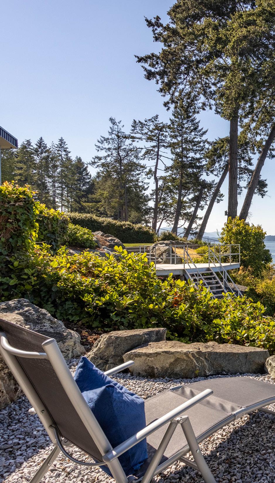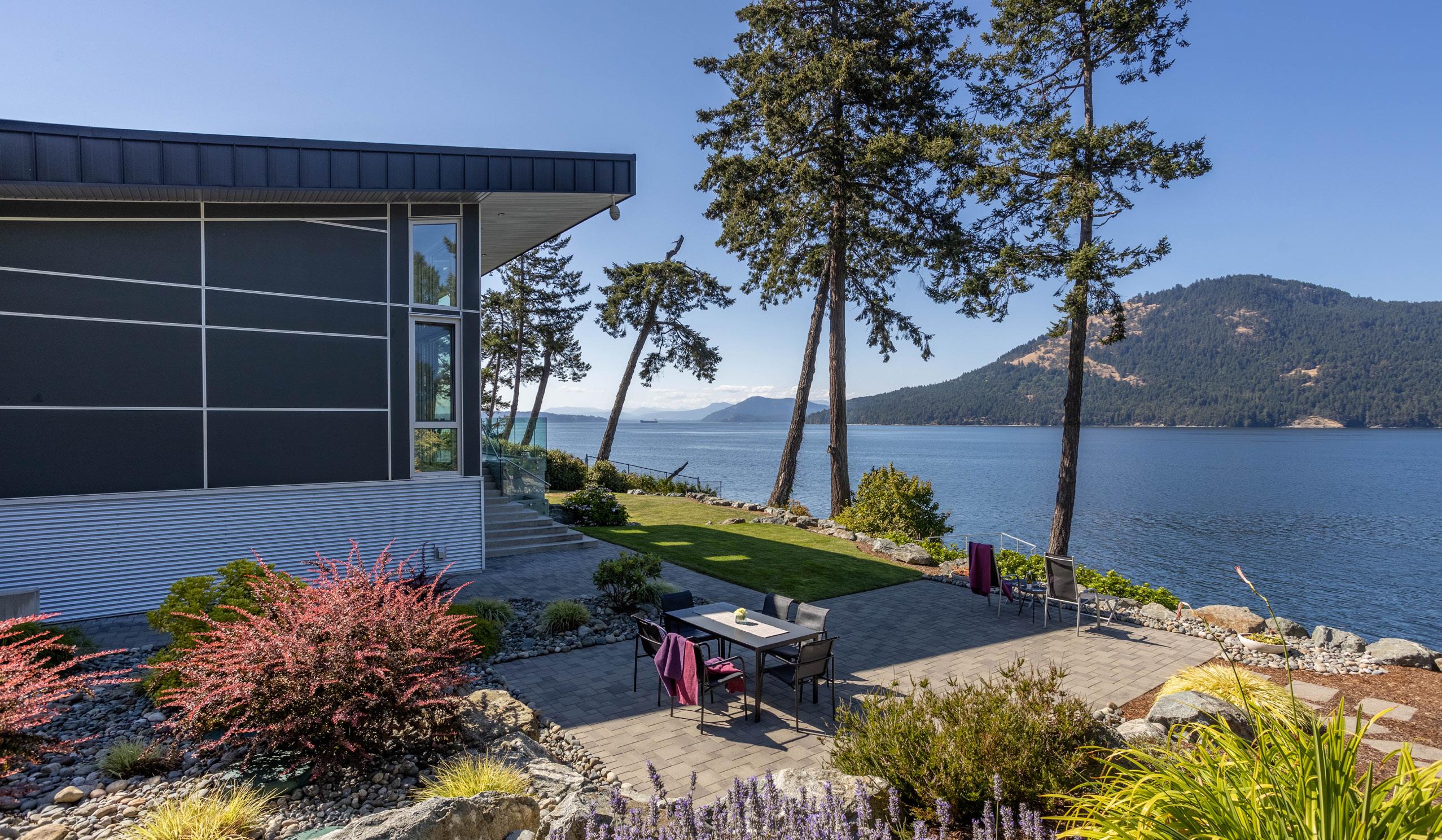 The covered patio enables you to watch the active marine life and admire the impeccable landscaping.
