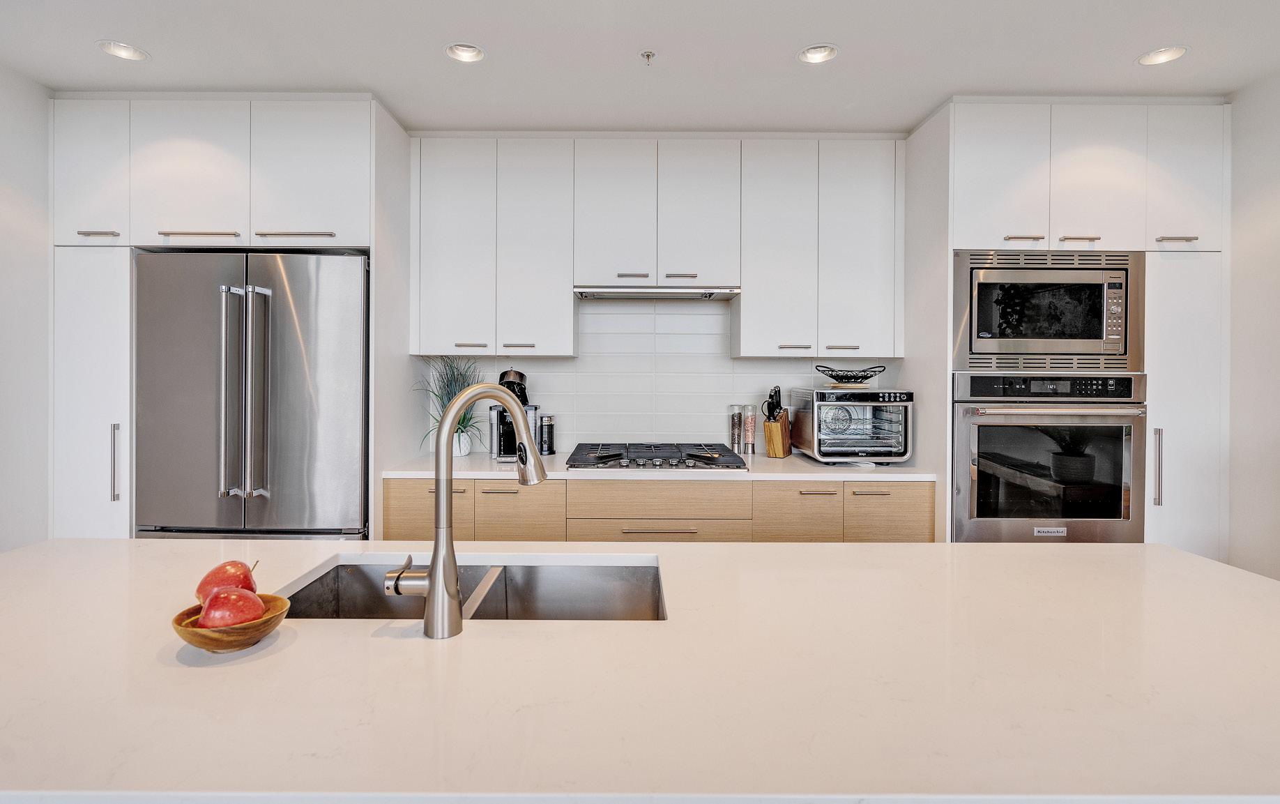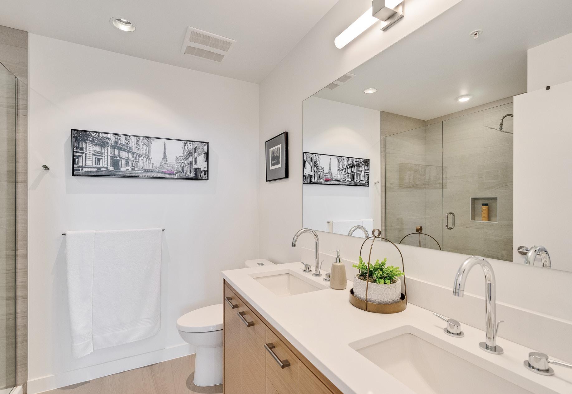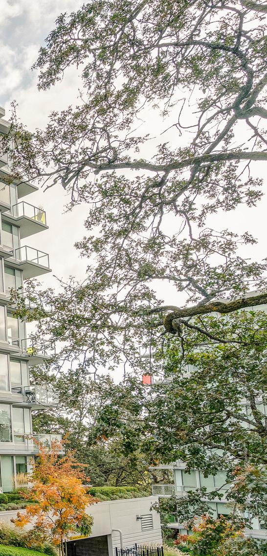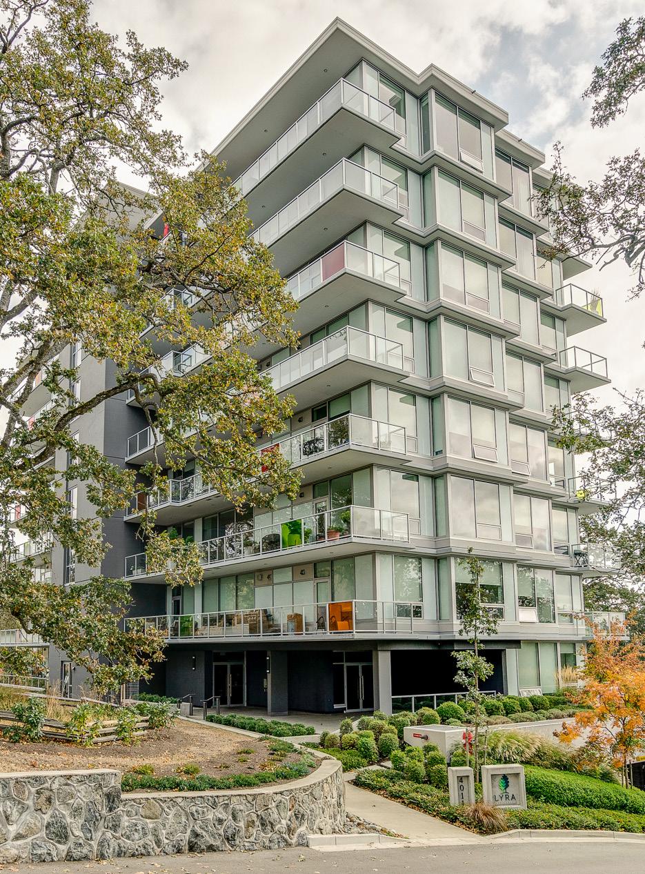urban convenience with spectacular views and proximity to the Galloping Goose and Lochside Trails. Both bedrooms offer superb comfort, and the primary suite, with two closets, boasts a spa-like 4-piece ensuite with a rainshower. Both bathrooms have heated tile floors. With top-tier finishings and a gourmet kitchen, Lyra Residences invites you to a life of luxury where nature’s beauty envelops every room. Secure parking further ensures that each day is effortlessly enjoyable.