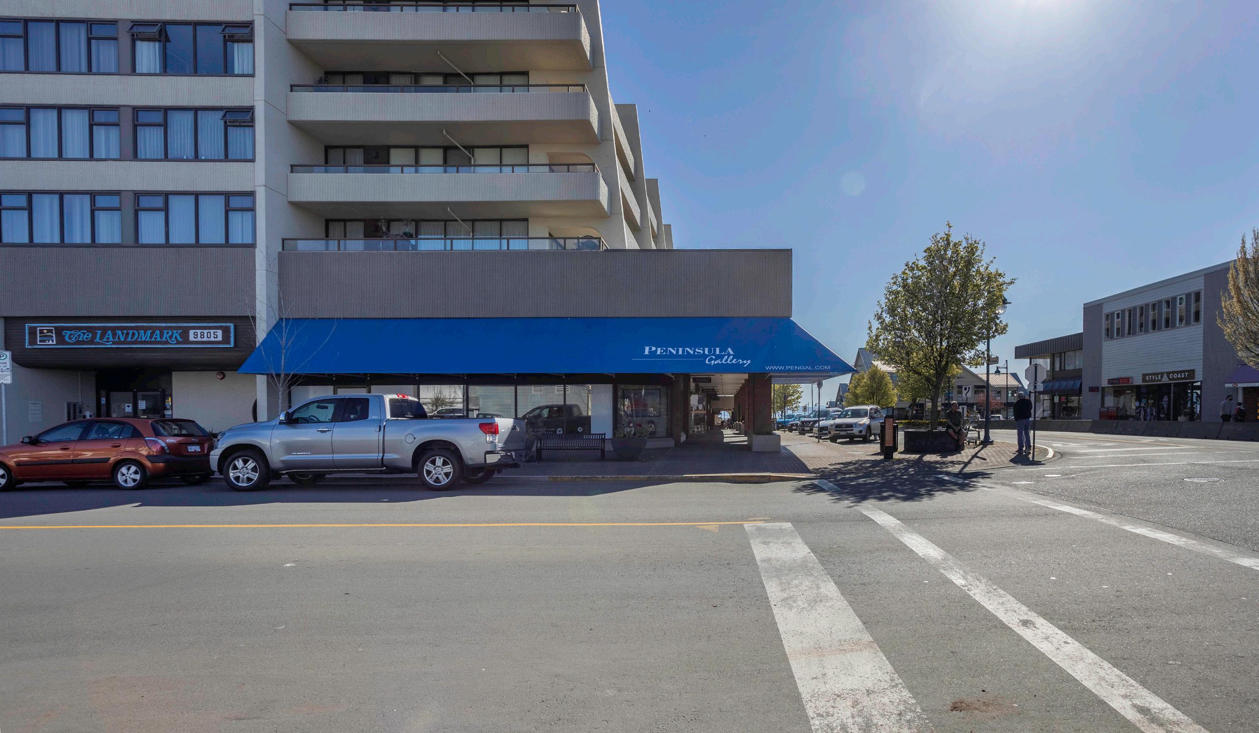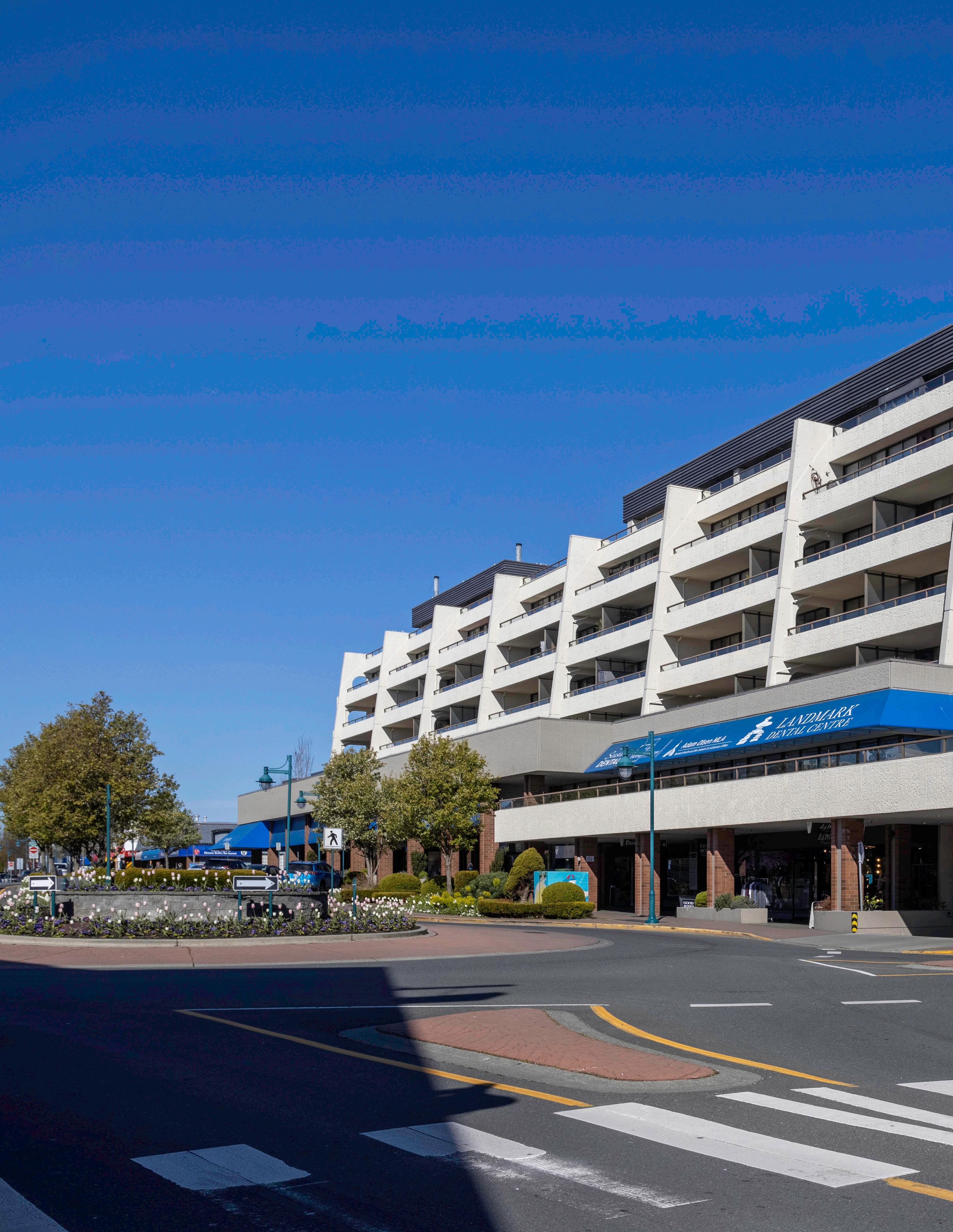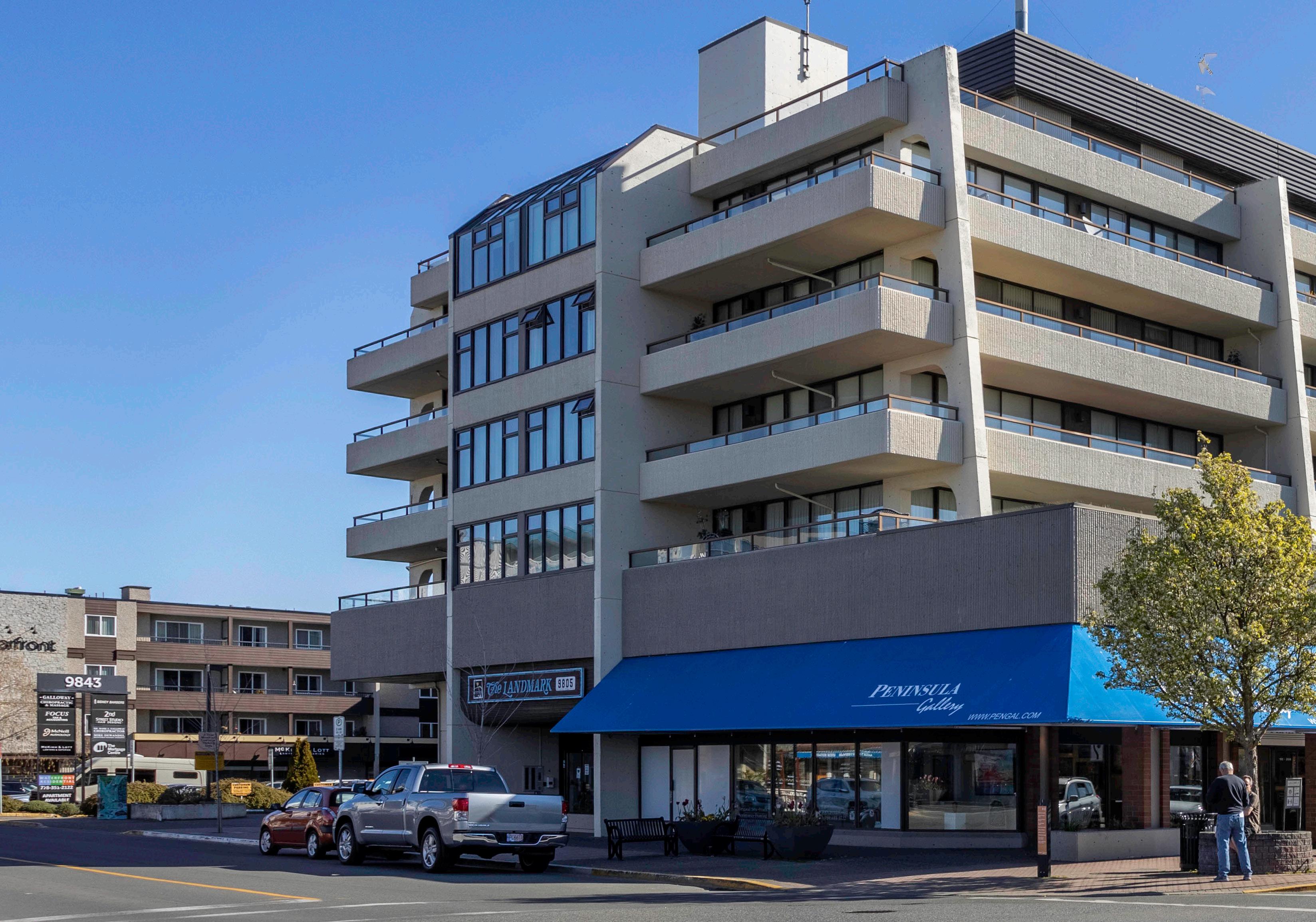 The Landmark, a concrete building, provides underground parking, guest suites, workshop, and a monitored entrance.