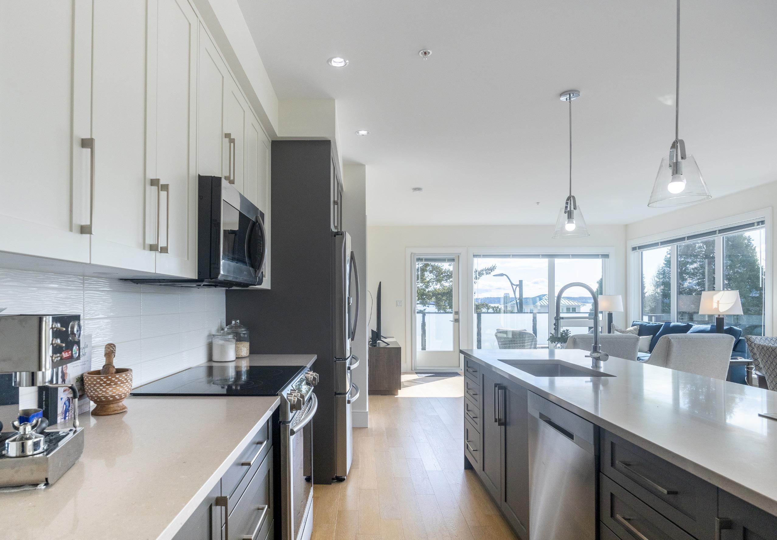 generous quartz island, & ample cupboard & counter space for all your culinary creations. Open-concept living space is great for entertaining.