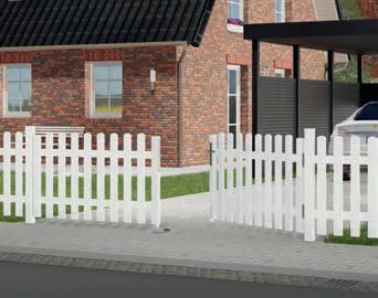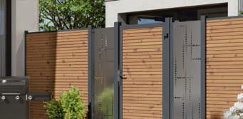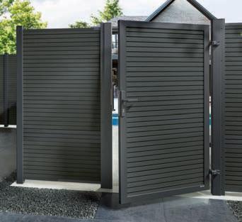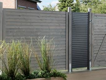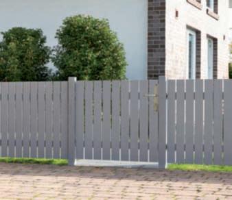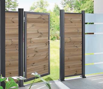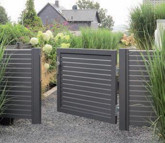 Preisbeispiele: Zaunfeld, Anthrazit, Taupe-Grau, Teak-Braun oder Lärche, 178 x 184 cm 269,– | Standard-Tor, 98 x 180 cm 699,– (Seite 8) | Tor auf Maß 1.299,–