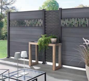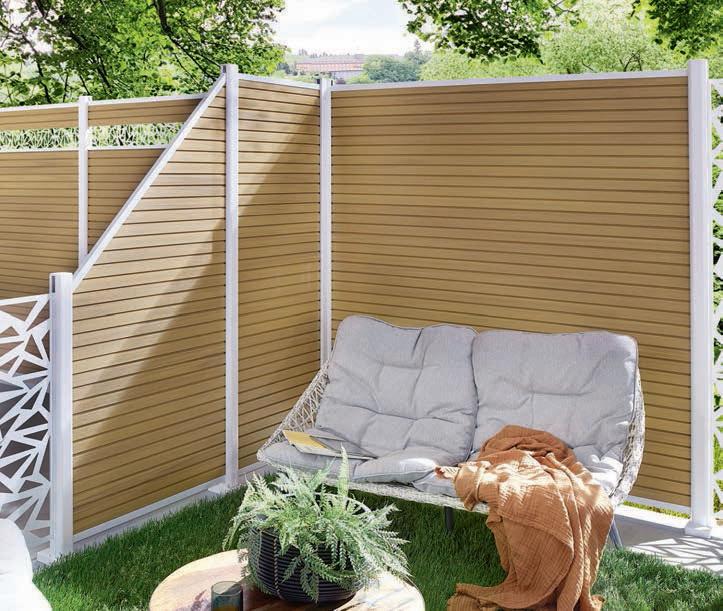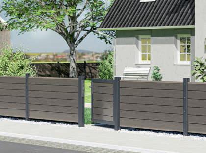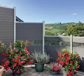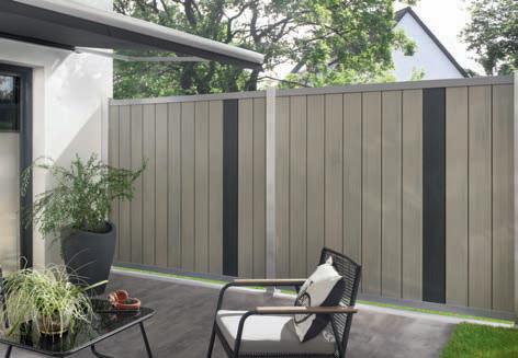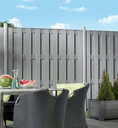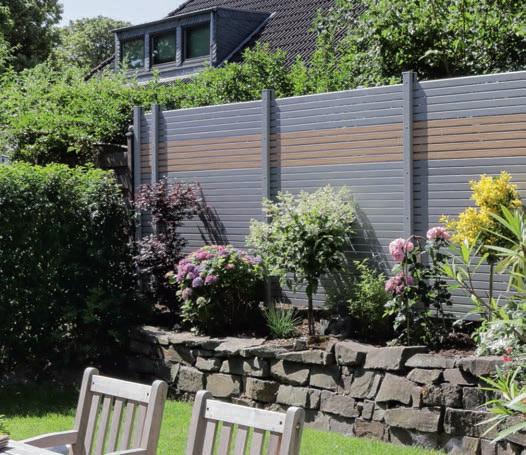 Modulzaun aus coextrudiertem, beschichtetem WPC mit 15 cm (CLASSIC) und 30 cm (XL) Profilhöhe. Alle Profile sind frei kürzbar und in der Höhe anpassbar. Wählen Sie auch hier Pfosten und Torelemente (ab Seite 8) nach Wunsch.