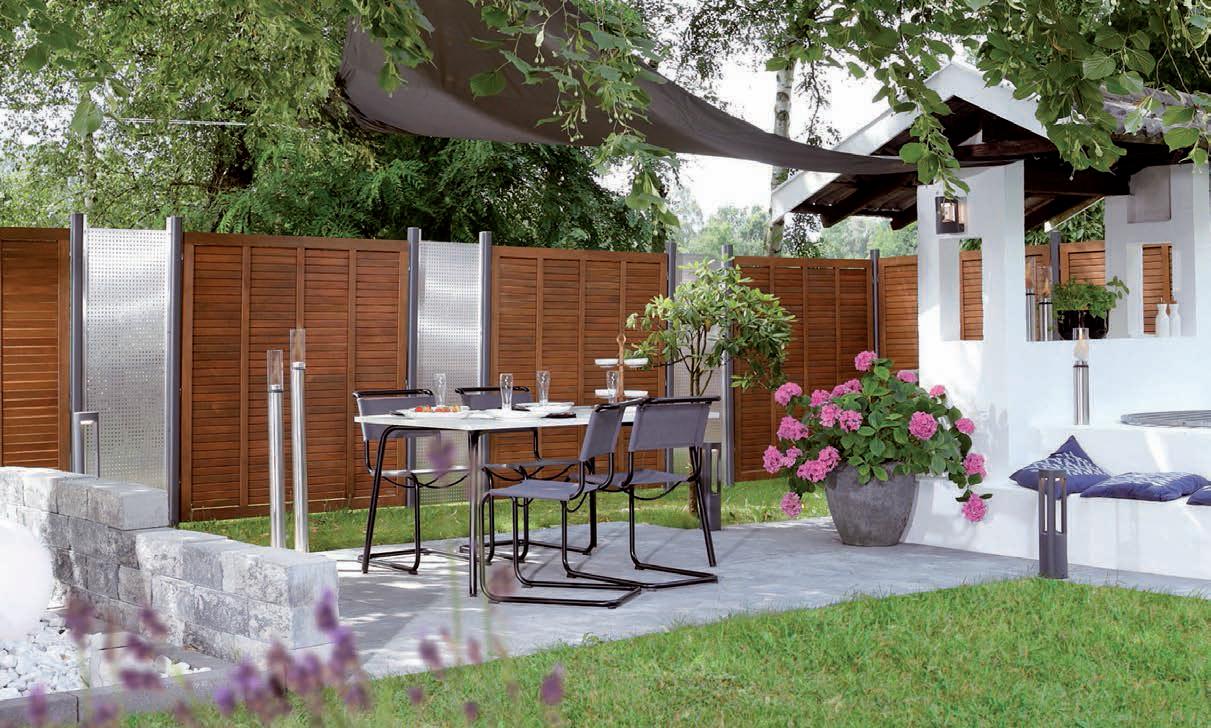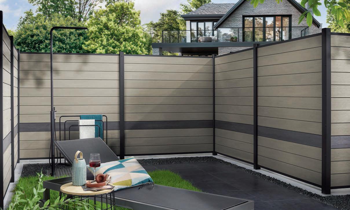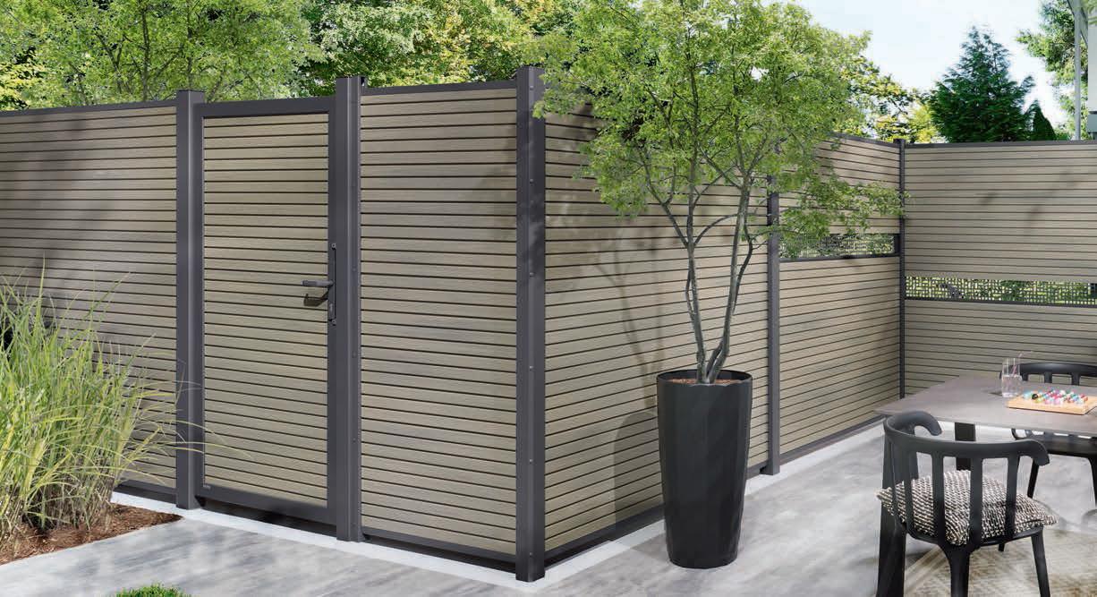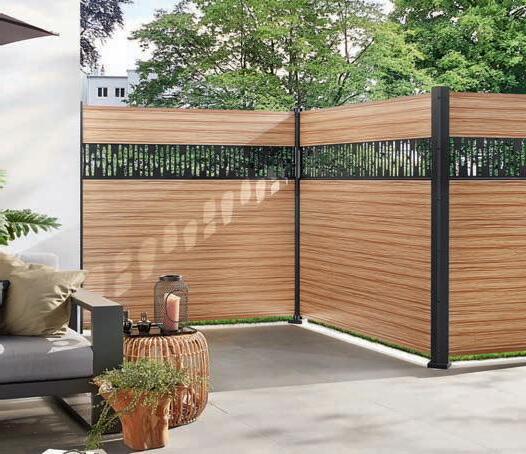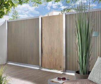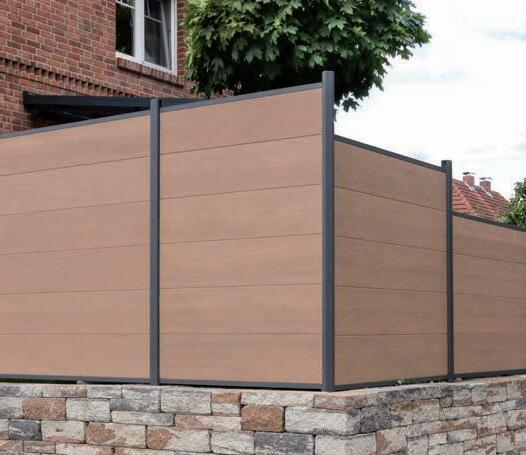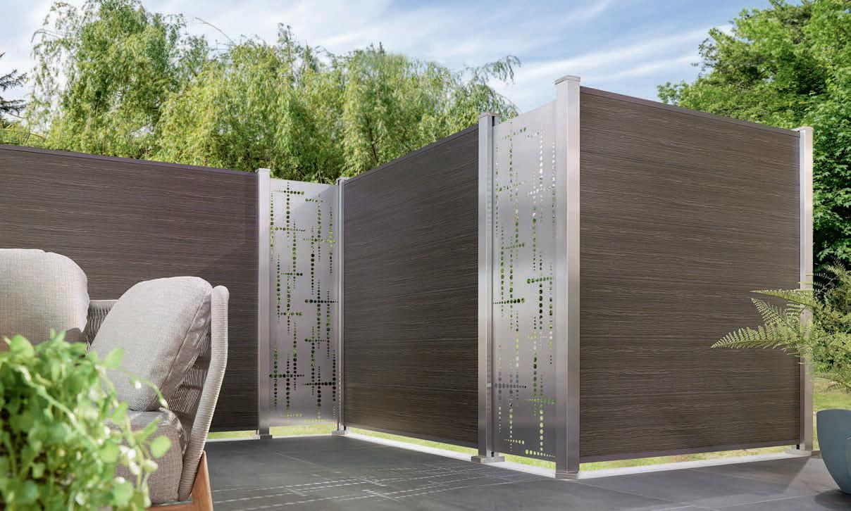 SYSTEM lebt von der Vielfalt der Gestaltung: Kombinieren Sie flexible Steckzaunelemente und Elemente mit festen Maßen miteinander: WPC mit Glas, Aluminium mit Edelstahl, Keramik mit ACP oder ganz so, wie Sie es mögen