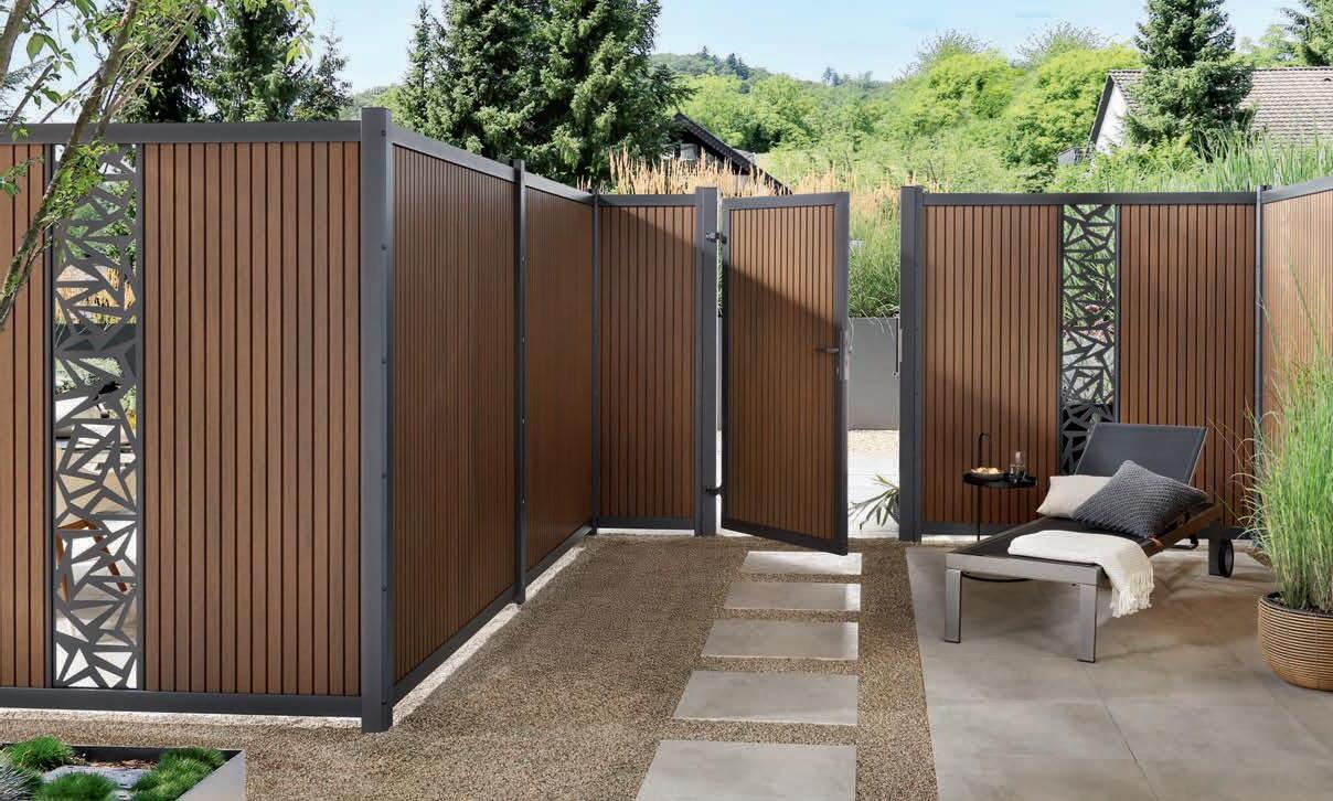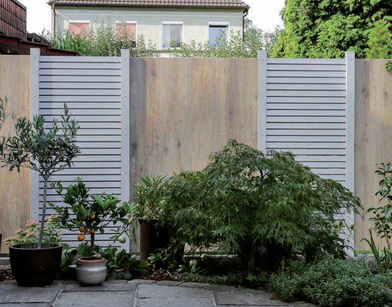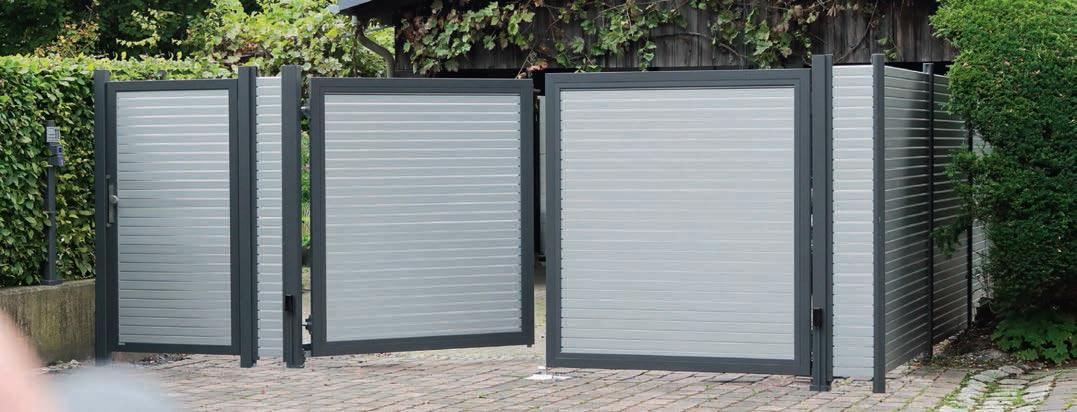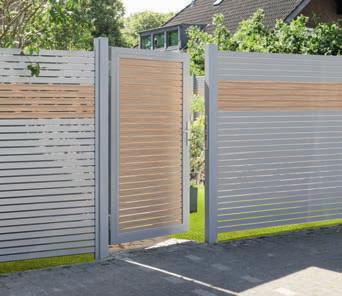 Über 20 Zaunfelder aus Aluminium-Verbundplatten (ACP) in drei Designs, sehr stabil, wetterbeständig sowie bruch- und schlagfest. Passende Tore ab Seite 8.