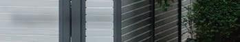 Modulzaun in sechs Farbtönen aus pflegeleichtem Aluminium. Zaunfeld-Sets in zwei Breiten erhältlich, 178 und 238 cm. Die Profile – CLASSIC 15 cm oder XL 30 hoch – sind für die Extra-Stabilität von innen ausgeschäumt.