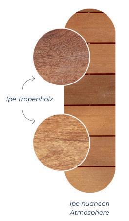 In den Terrassendielen Nuances spiegelt sich die gesamte Farbpalette von Terrassendielen aus IPE-Tropenholz wider. Diese aus Silvadec-Verbundholz hergestellten Terrassendielen profitieren von einem speziellen Herstellungsverfahren, das ihnen ihre außergewöhnlichen Eigenschaften verleiht. Ihre Farben bleiben ohne besondere Behandlung im Laufe der Jahre stabil, bilden garantiert keine Splitter, sind pflegeleicht und optimal für Anwendungen aller Art geeignet. Es ist weder eine besondere Behandlung noch ein Sättiger erforderlich. Eine umweltfreundliche Lösung für den Außenbereich.