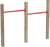 Material: Europ. Lärchenholz, Breite: 203, Höhe: 155, Pfosten: 88 x 88 mm (ohne Bodenanker), Pfostenköpfe abgeschrägt, mit Nut zur Aufnahme der Stangenhalterung, Reckstangen aus verzinktem Stahl, lackiert, Stangenhöhe variabel montierbar