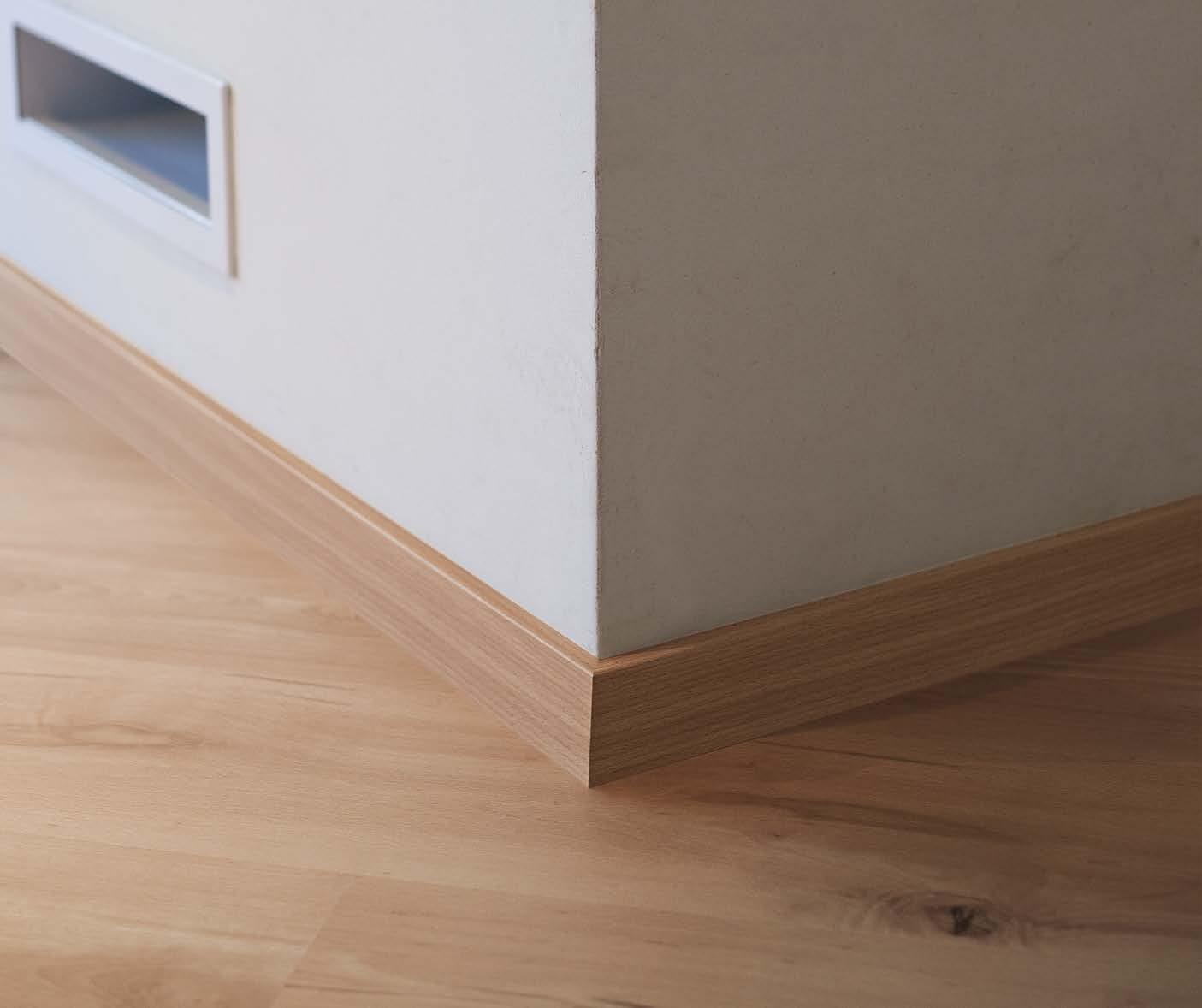 Harmonie pur zwischen Boden und Fußleisten bringen dekor- bzw. farbgleiche Leisten. Sie sind abgestimmt auf das Dekor des jeweiligen Bodens und verlängern dadurch optisch den Boden zur Wand hin.
