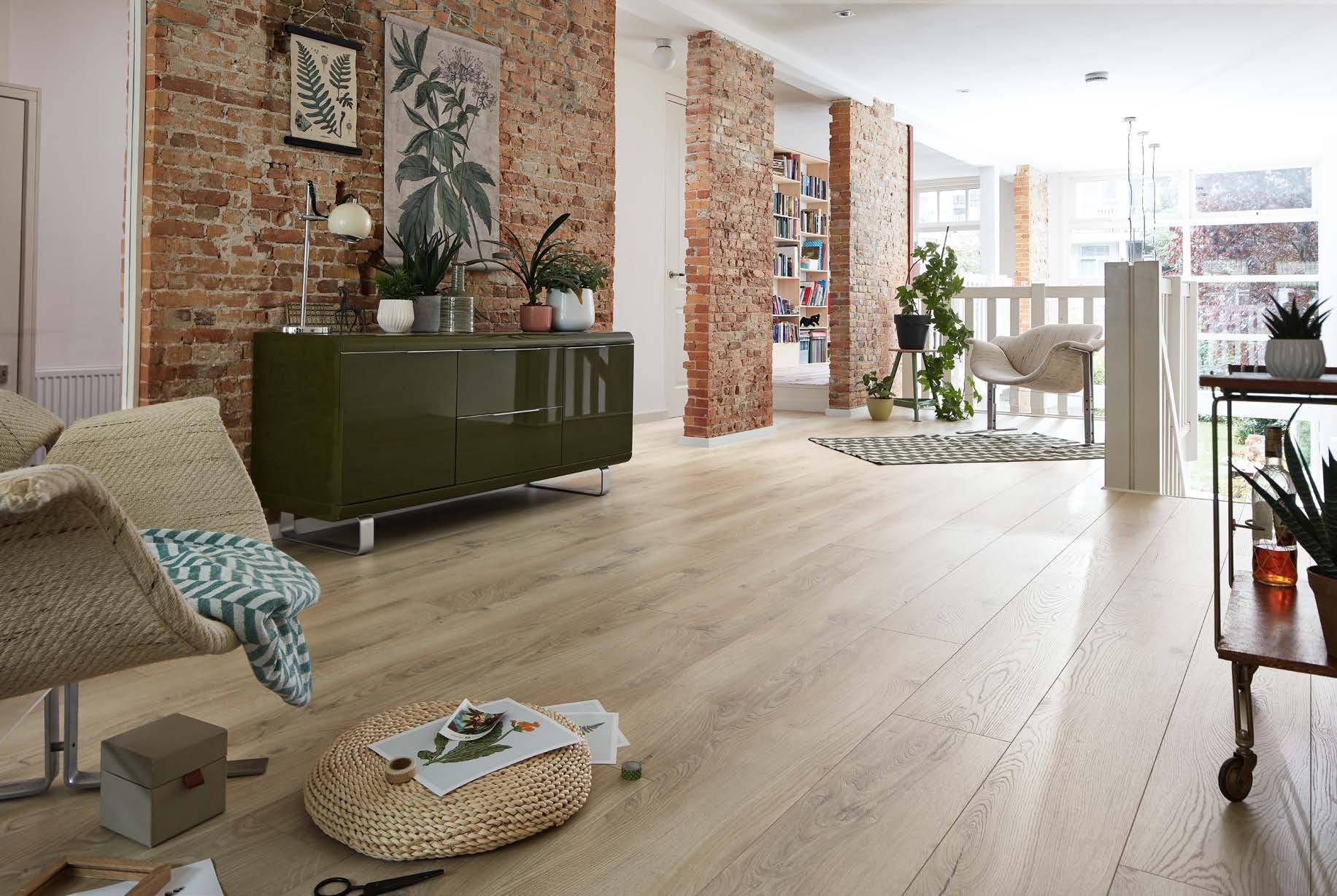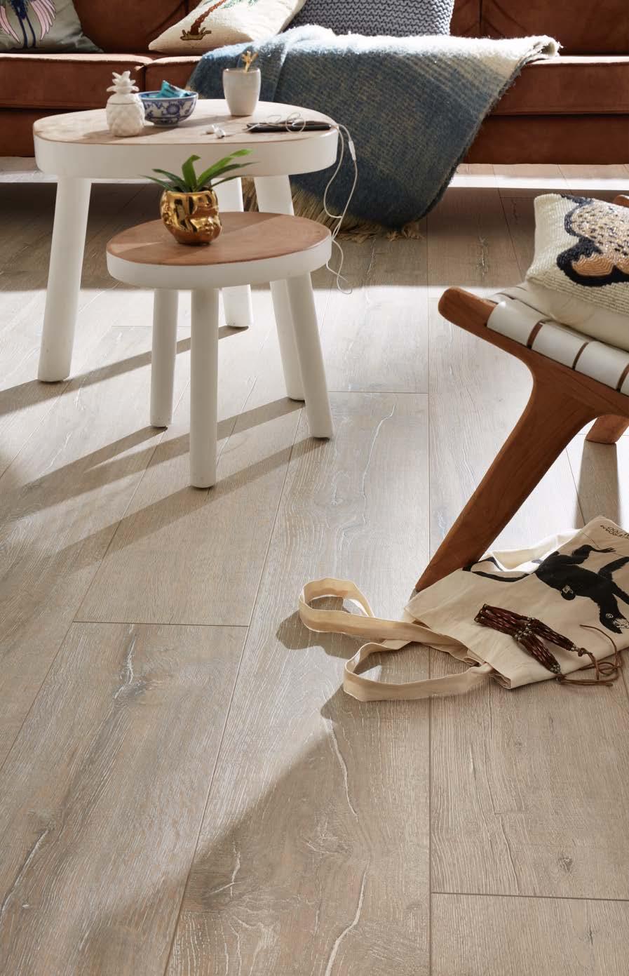 Die Laminatböden dieser vier Kollektionen bieten größtmögliche Vielfalt in Optik und Format bei besten technischen Eigenschaften: Mit einer Aufbauhöhe von 8 mm (10 mm mit Trittschallkaschierung), der Nutzungklasse 23/32 für stark genutzte Wohnbereiche und gewerbliche Bereiche mit mittlerer Nutzungsintensität wie Boutiquen und Restaurants und der 4h-Wasserresistenz machen diese Laminatböden alles mit.