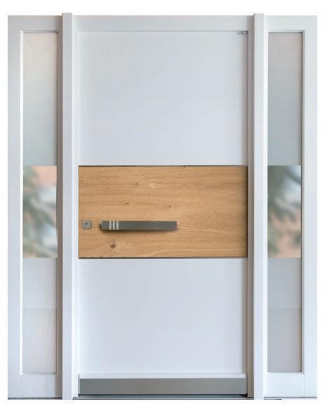 Extravaganz mit Überzeugungsfaktor. Haustüren mit gekonnt kombinierten modernen Details. Planos-Stufenglas, Edelstahladern, edles Eichenfurnier – hier ist alles passgenau aufeinander abgestimmt.