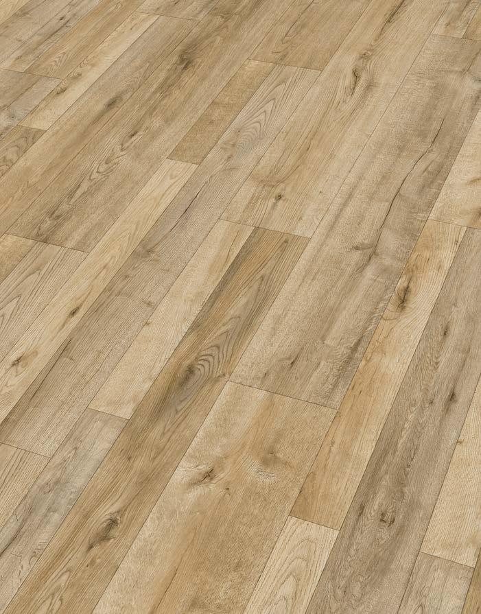 Die Laminatböden dieser vier Kollektionen bieten größtmögliche Vielfalt in Optik und Format bei besten technischen Eigenschaften: Mit einer Aufbauhöhe von 8 mm (10 mm mit Trittschallkaschierung), der Nutzungklasse 23/32 für stark genutzte Wohnbereiche und gewerbliche Bereiche mit mittlerer Nutzungsintensität wie Boutiquen und Restaurants und der 4h-Wasserresistenz machen diese Laminatböden alles mit.