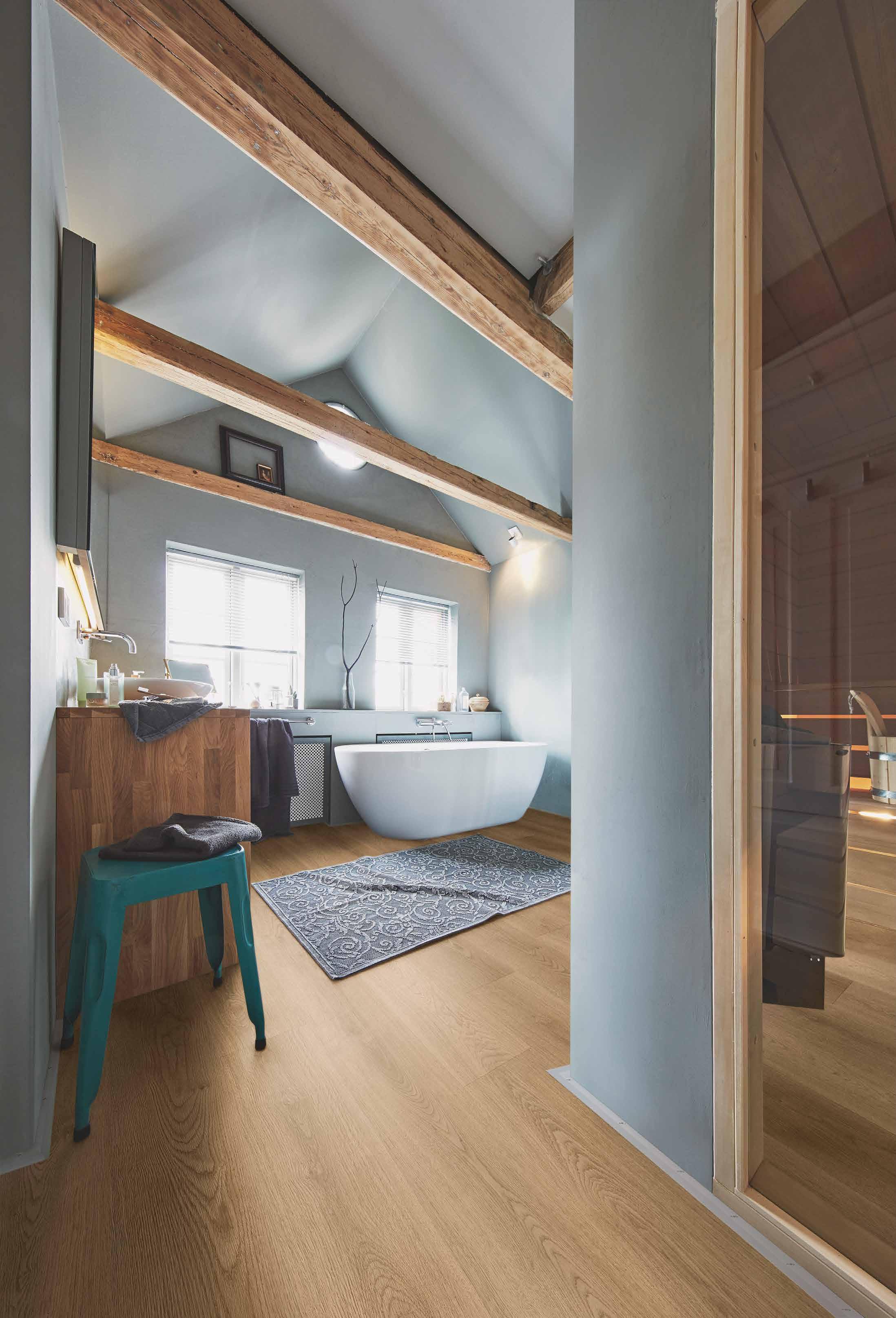 Harmonie pur zwischen Boden und Fußleisten bringen dekor- bzw. farbgleiche Leisten. Sie sind abgestimmt auf das Dekor des jeweiligen Bodens und verlängern dadurch optisch den Boden zur Wand hin.