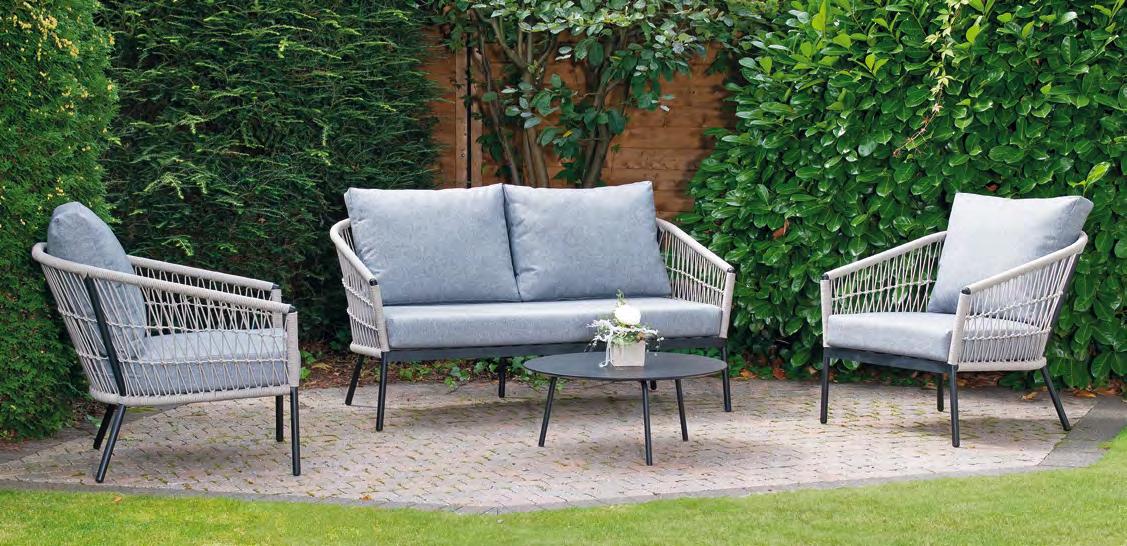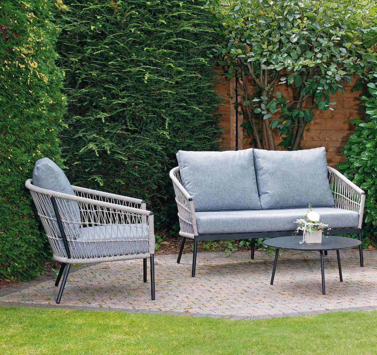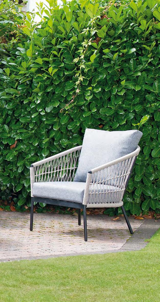 Aluminiumgestell anthrazit beflochten mit Polyrope hellgrau, inklusive Kissen