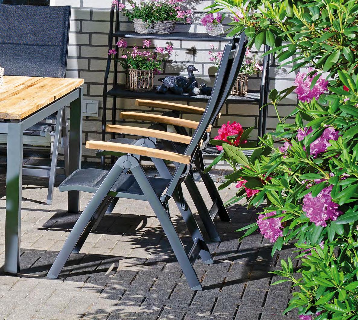 • Teakholzarmlehnen • Stufenlos verstellbar