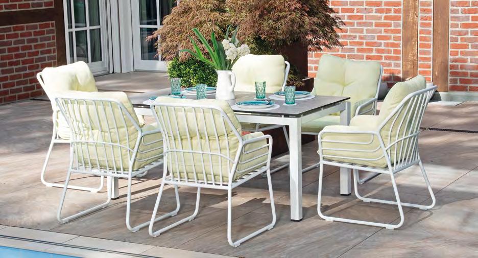 Der Dining-Sessel COSY mit matt weißem Alugestell kombiniert stilvolles Design mit Funktionalität. Er lässt sich mit einem separat erhältlichen Kissen ergänzen, das Sitz, Rücken und Seitenpolsterung in einem Stück vereint und für hohen Komfort sorgt. Die Kissen sind in sechs Farben erhältlich: Light Grey, Natural Sand, Rust Style, Apricot, Sky Blue und Lime Green. Der robuste Olefinstoff, SOFTCUSHION, SUNPROOF, gewährleistet eine lange Lebensdauer und pflegeleichte Handhabung.