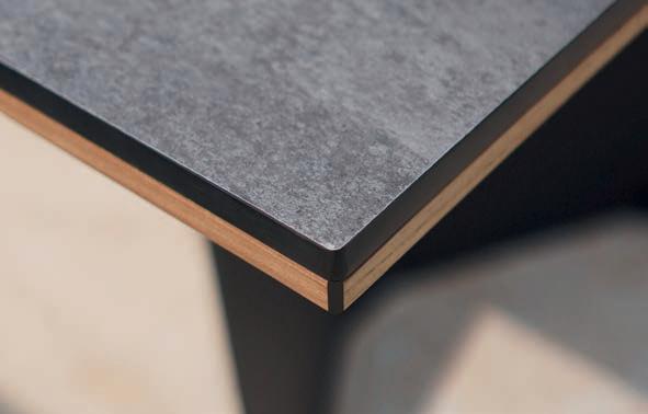 Laminat-Schichtstoffplatte aus rund 60 Lagen Natronkernpapieren: SELA-Tischplatten kombinieren exzellente Witterungsbeständigkeit, UV-Stabilität, hohe Kratz- und Abriebfestigkeit für einfaches Handling und dauerhaften Gebrauch. Das ideale Material für den Einsatz im Freien. Alle SELA-Tischplatten werden mit einer Schweizer Kante geliefert.