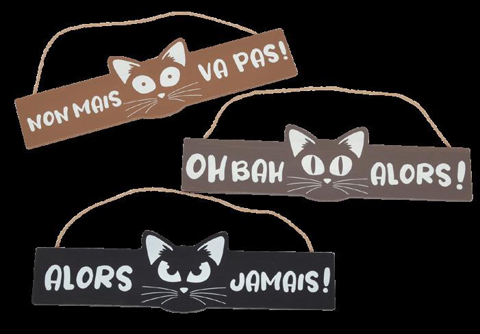 1 - xc218 WOODSTOCK horloge engrenages 72cm 3AA. 2 - xc214 ARLINGTON suspension 43cm. 3 - rt235 HOLLY cerf assise 53cm ass. 4 - mb501 BALADE pancarte chat ass.