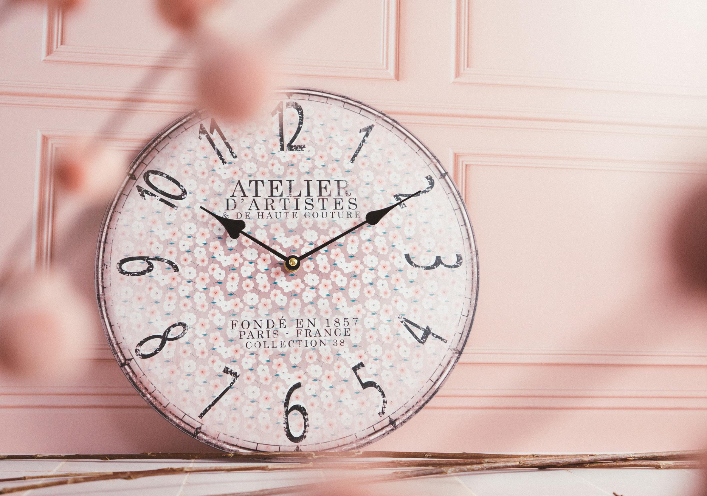 1 - rt980 AGREABLE coussin chats ass. 2 - gd466 TIC TAC horloge balancier fleurs 2AA ass.