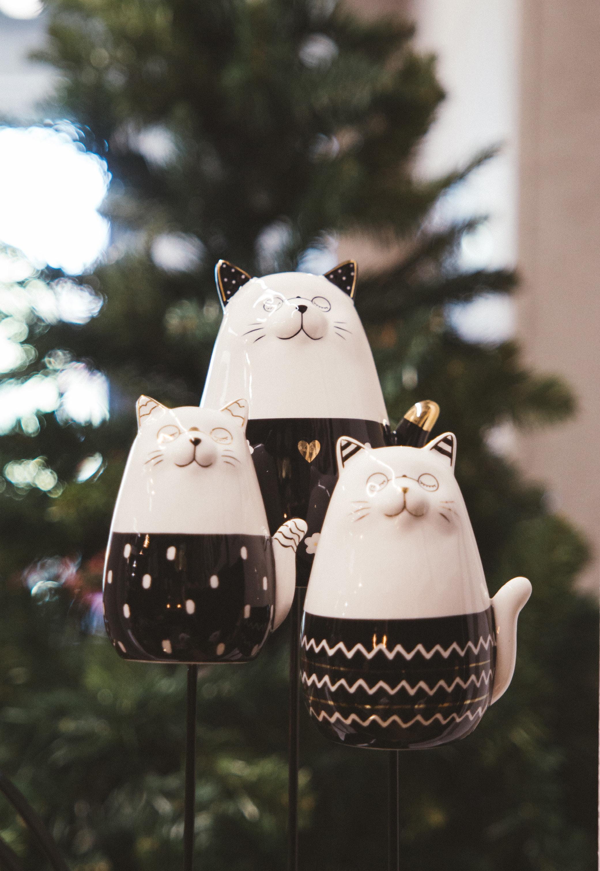 3 - ka142-143-144 STUBBS chat bleu/or assis 8/10/13cm. 4 - sa269 NIHON vase boule 26cm ass.