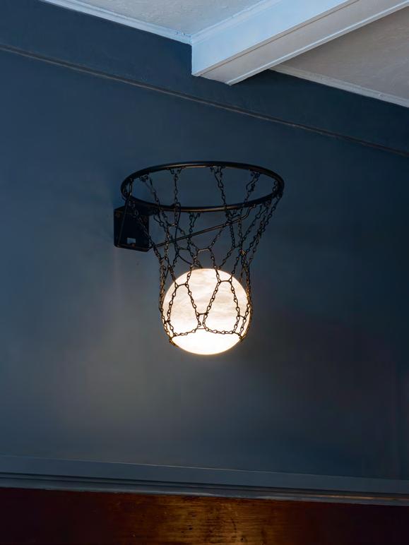 Top Right Carved from a single block of alabaster, this sculptural wall light by Franck Genser draws on the raw energy of New York, taking the form of a basketball frozen mid-air just before the rebound. Light diffuses through the translucent stone, revealing natural veining and creating a soft nocturnal glow reminiscent of an urban court (www.franckgenser.com).