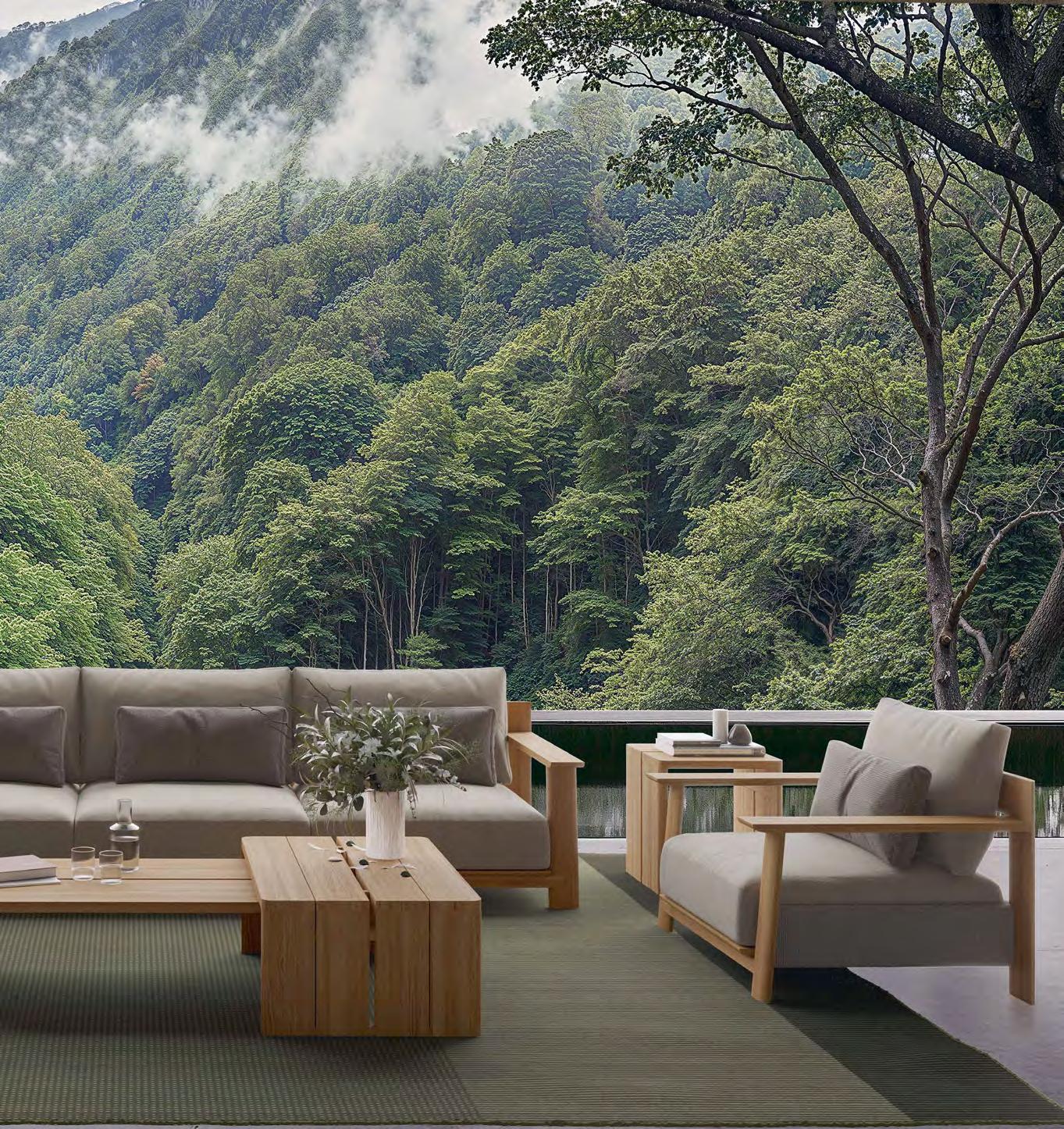 The new Suro collection by Tribù redefines contemporary outdoor living through balance of structure and softness. The dining table’s solid teak slats and seamless brass connections allow for dynamic extension, while the armchair combines teak or powder-coated aluminium with braided rope weaving. A cocooning, petal-like backrest offers an inviting sense of comfort and refinement. Tribù is available from Acoola in Pol. Ind. San Pedro de Alcántara (www.acoola.eu) and Outdoor Concepts in San Pedro de Alcántara (www.outdoorconcepts.es).