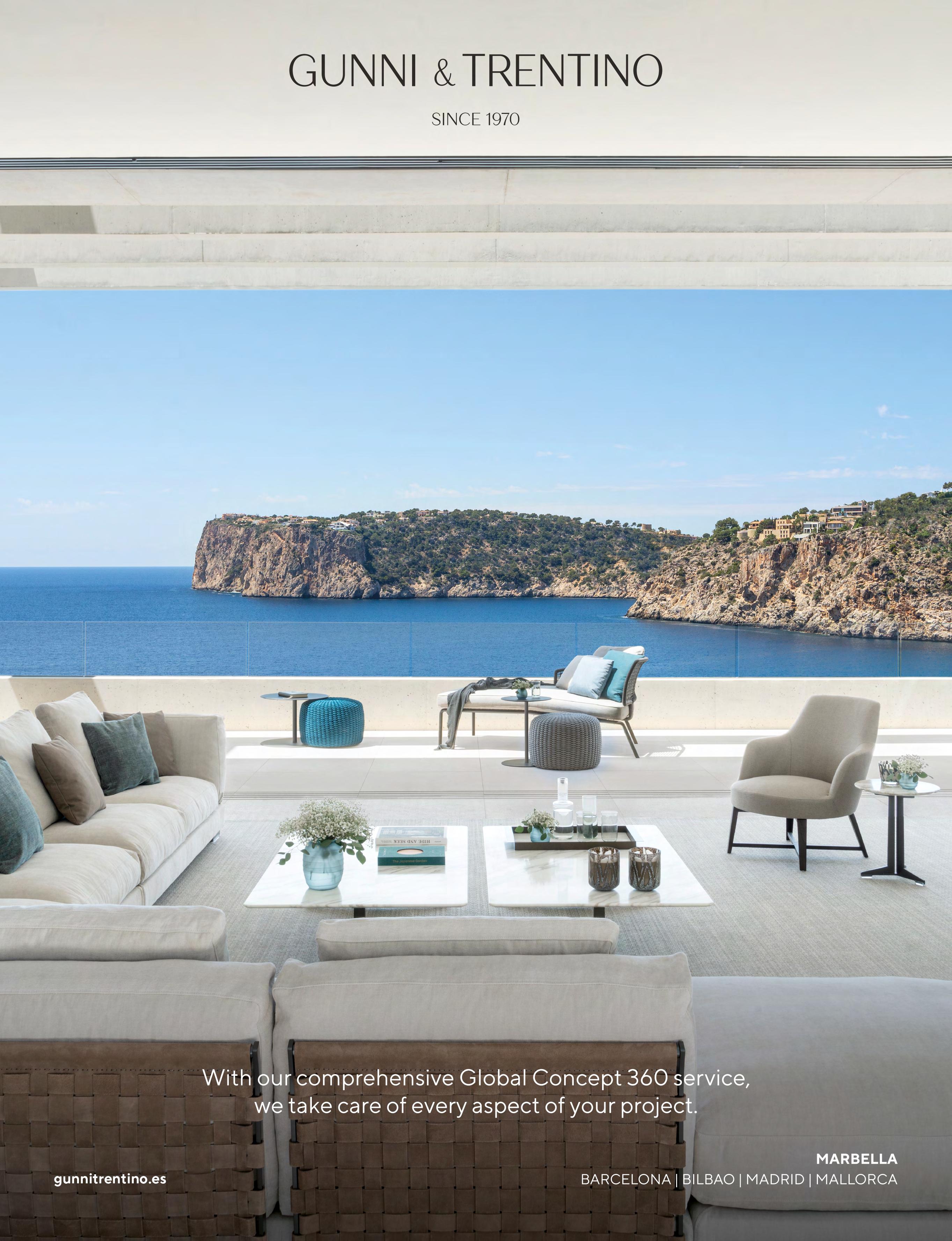 Carrying a vast range of stock for their Quick Ship programme, G&G Italia ensures seamless delivery to design professionals, hospitality, and private homes. Their in-house project team specialises in customised outdoor furniture solutions, supporting interior designers to create the perfect outdoor space. Their wide selection of rope colours and new luxury 2025 fabric range makes each project unique and evokes a distinct ambience. G&G Italia’s products feature locally in exclusive venues such as NOBU Hotel, Sea Grill Restaurant, The Royal Suites, Thai Gallery, Alanda Hotel, Manuka, and the finest urbanisations and villas. For enquiries call (+34) 678 805 870 or visit www.gg-italia.net.