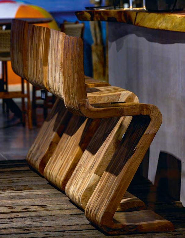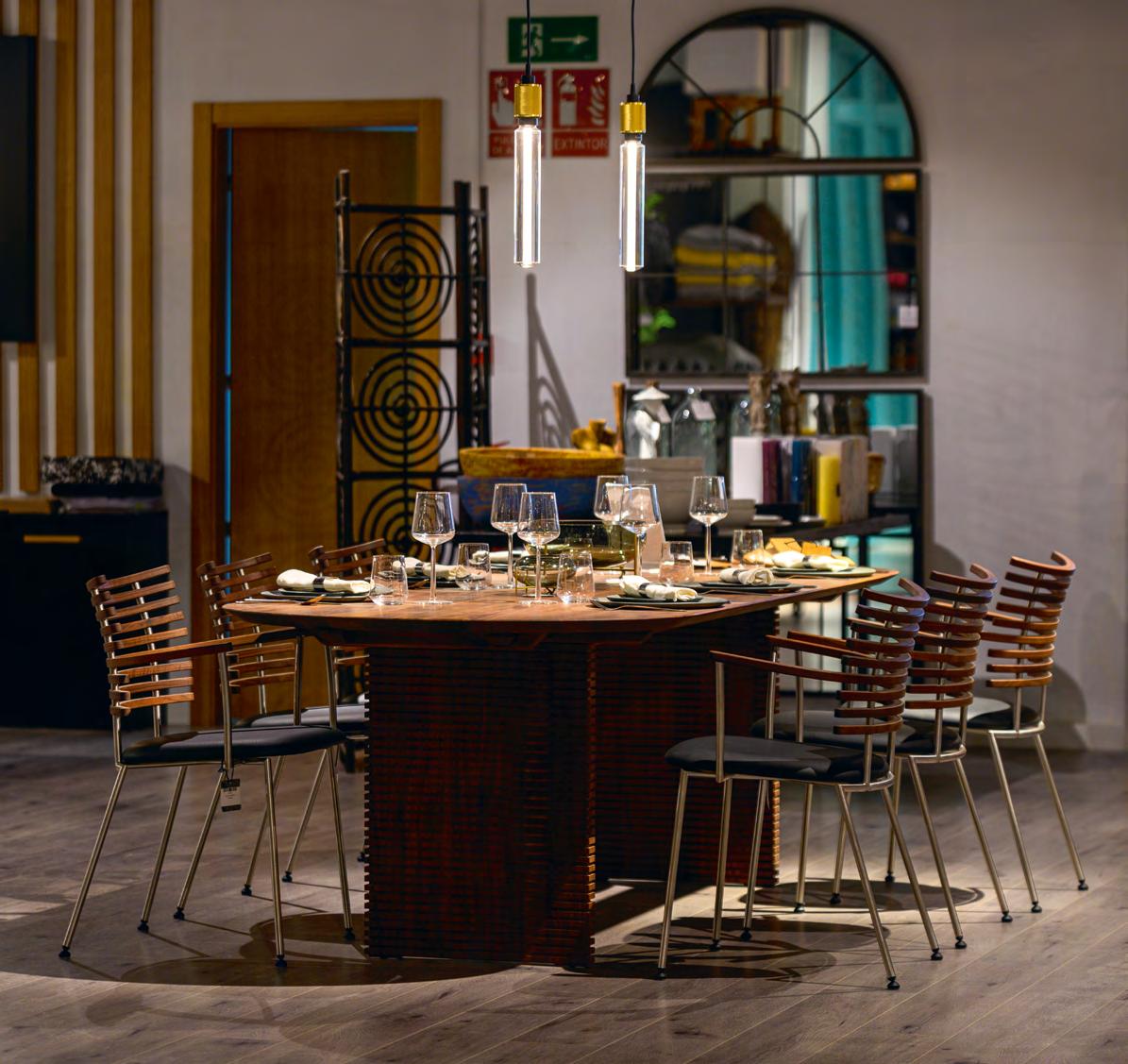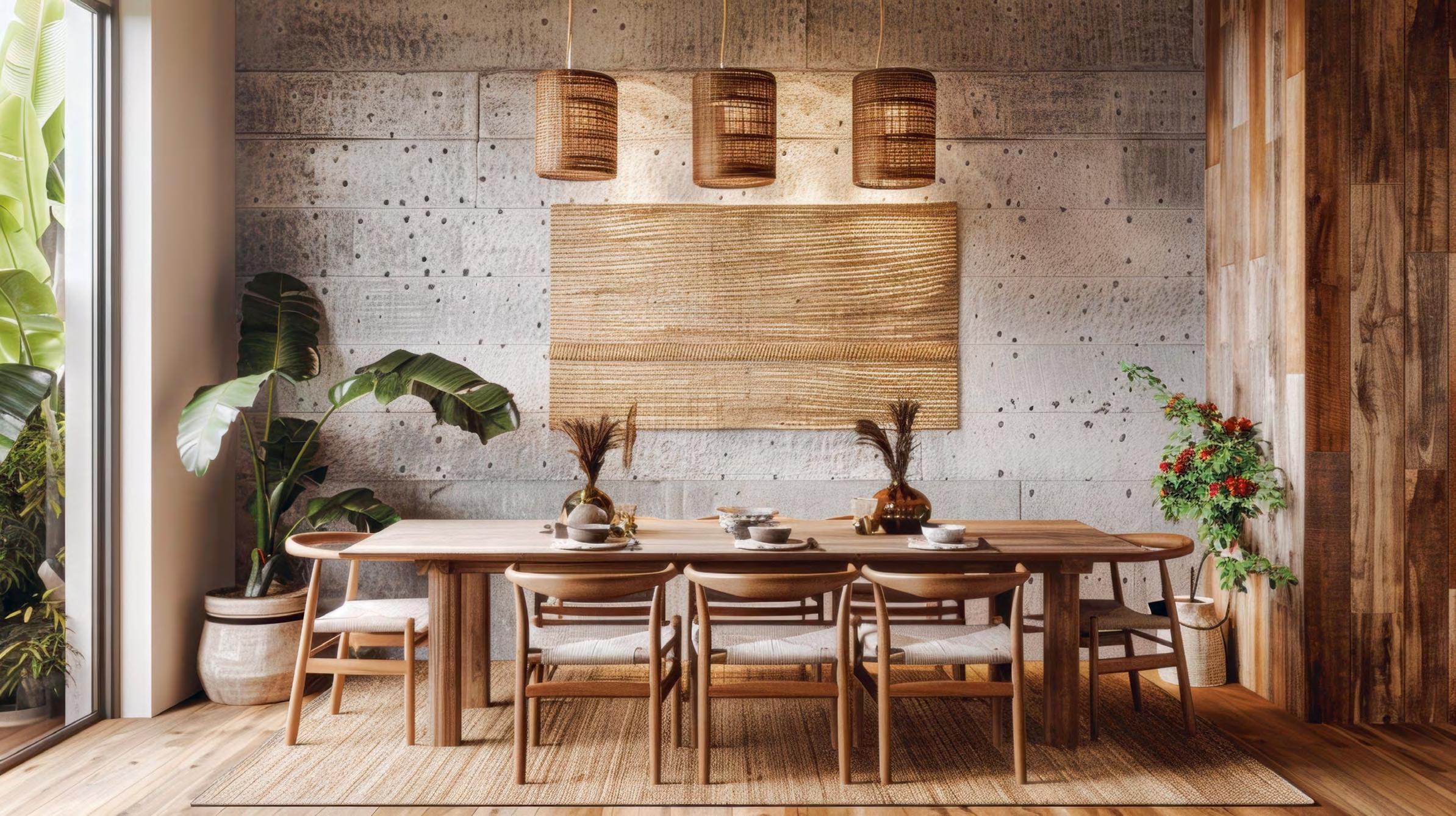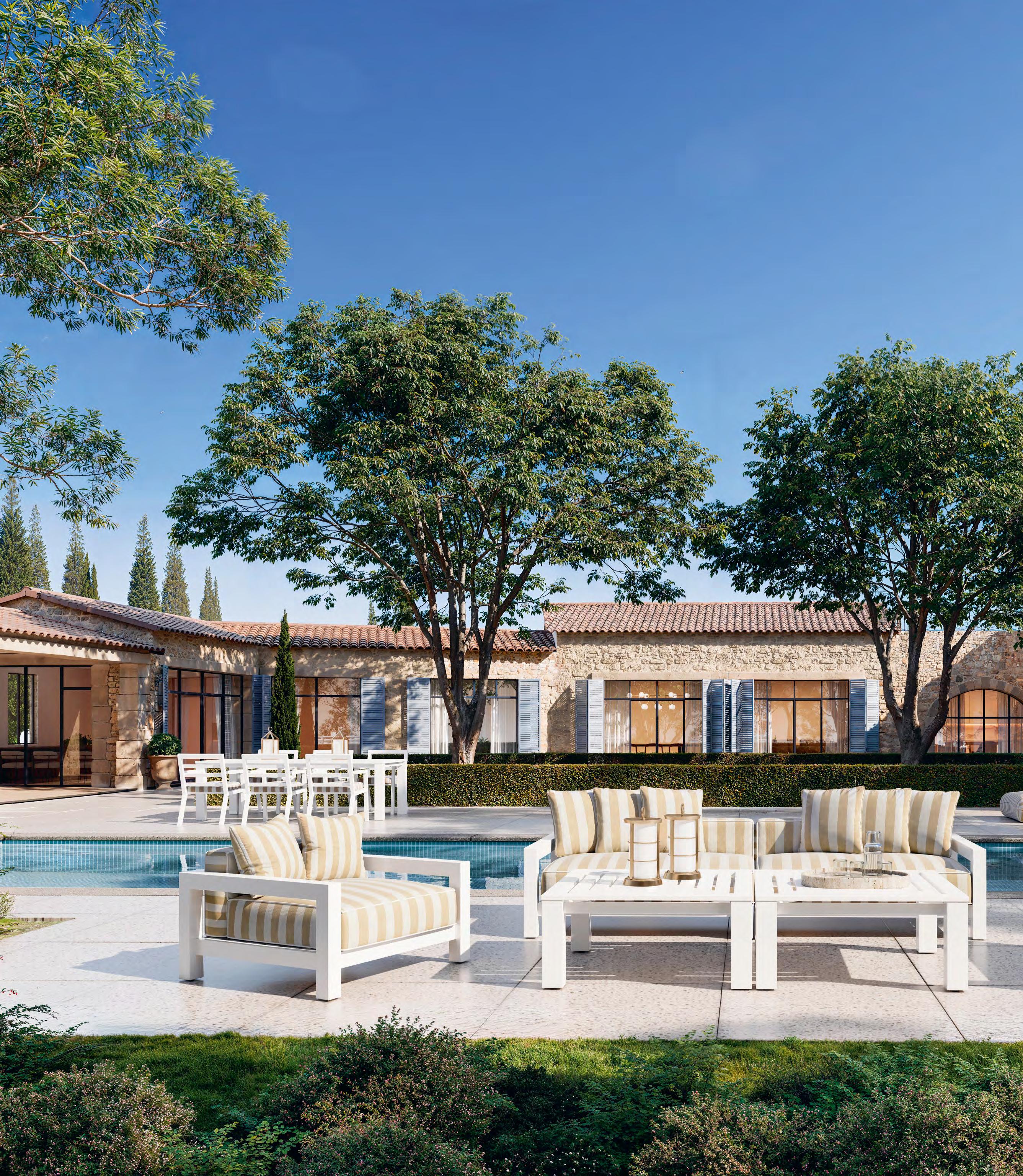 Nowadays, beautiful design is integrating eco-conscious materials and energy-efficient technology without sacrificing style. Architects and designers are prioritising natural textures and materials, bringing a tactile richness to interiors while reducing environmental impact. Bespoke artisanal techniques add authenticity and meaning to handcrafted ceramics, handwoven rugs, and sculptural lighting. Meanwhile, innovation in sustainable furniture, from reclaimed teak to weather-resistant bamboo and recycled fabrics, is redefining outdoor living. Smart technology now also plays a pivotal role, from retractable awnings that provide adaptable shade to energyefficient LED lighting, proving that sustainability and style can coexist.