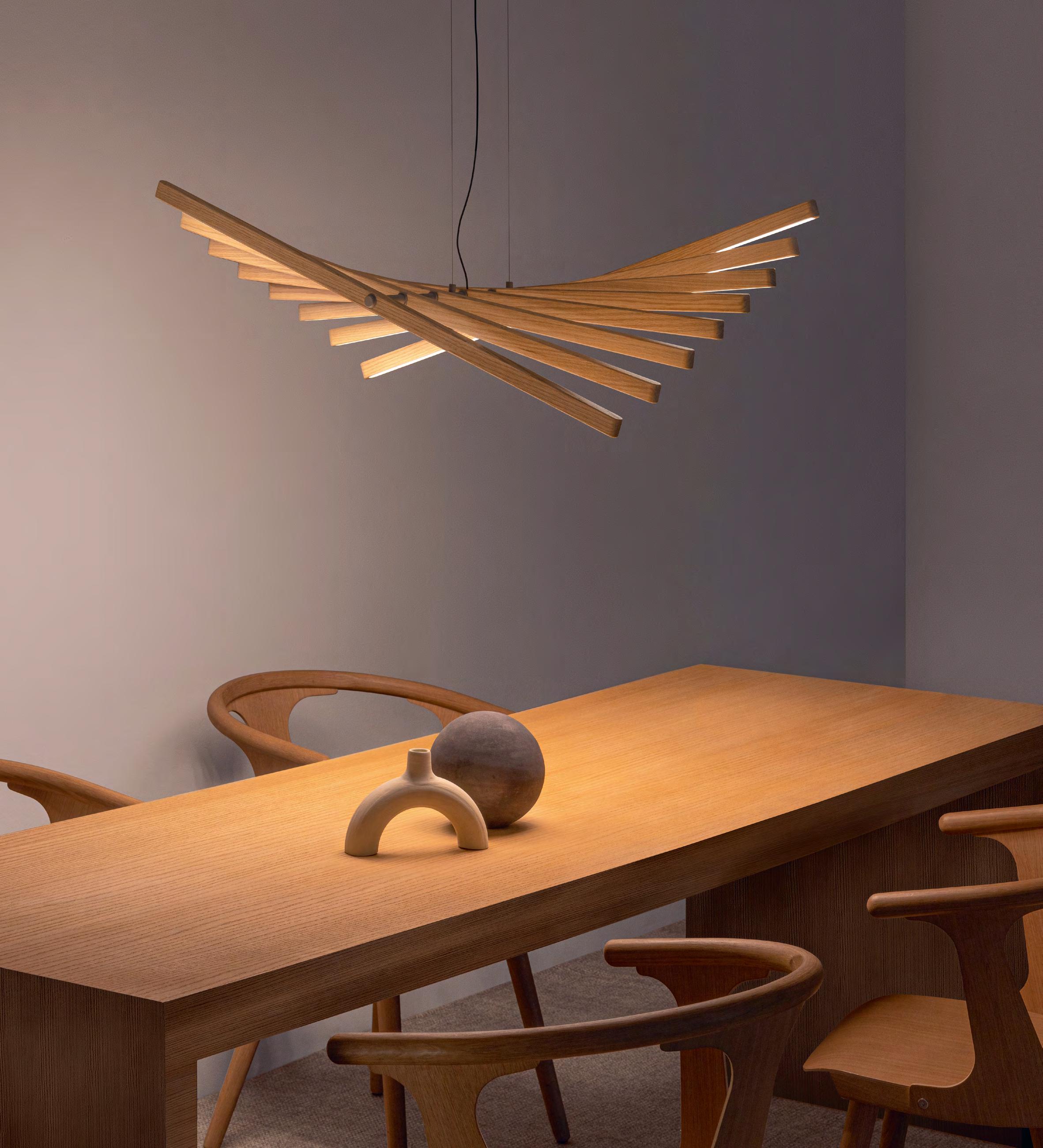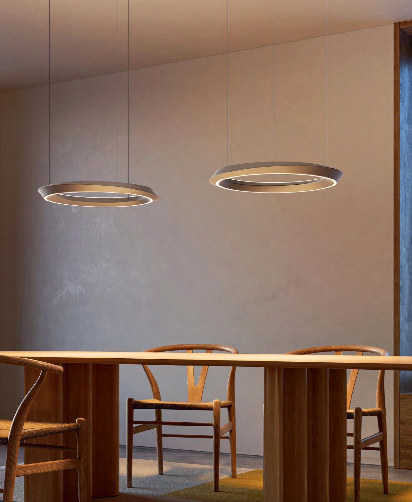 Occhio’s Mito Sospeso can be moved to a desired level with a simple gesture or a tap on the Occhio air app or controller. The length of the suspension can be varied between 50 centimetres to 200 centimetres. Even the colour temperature and light distribution can be adjusted to your requirements ( www.occhio.com ).