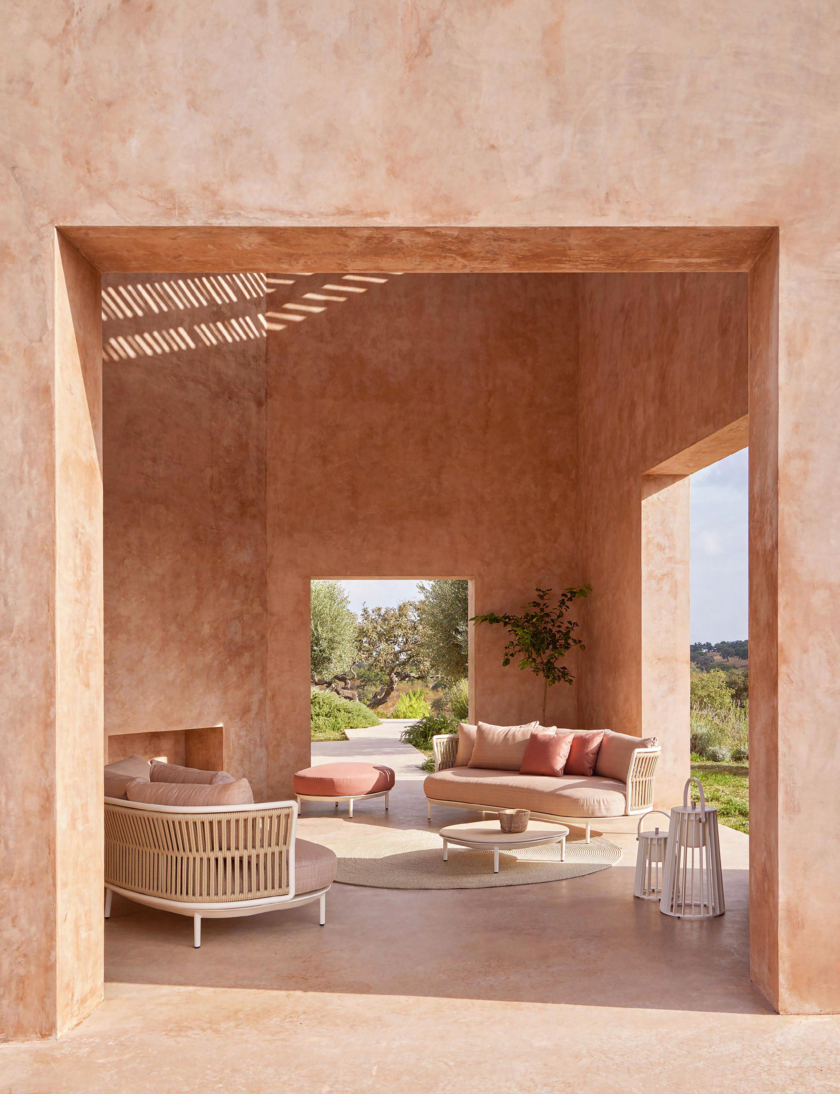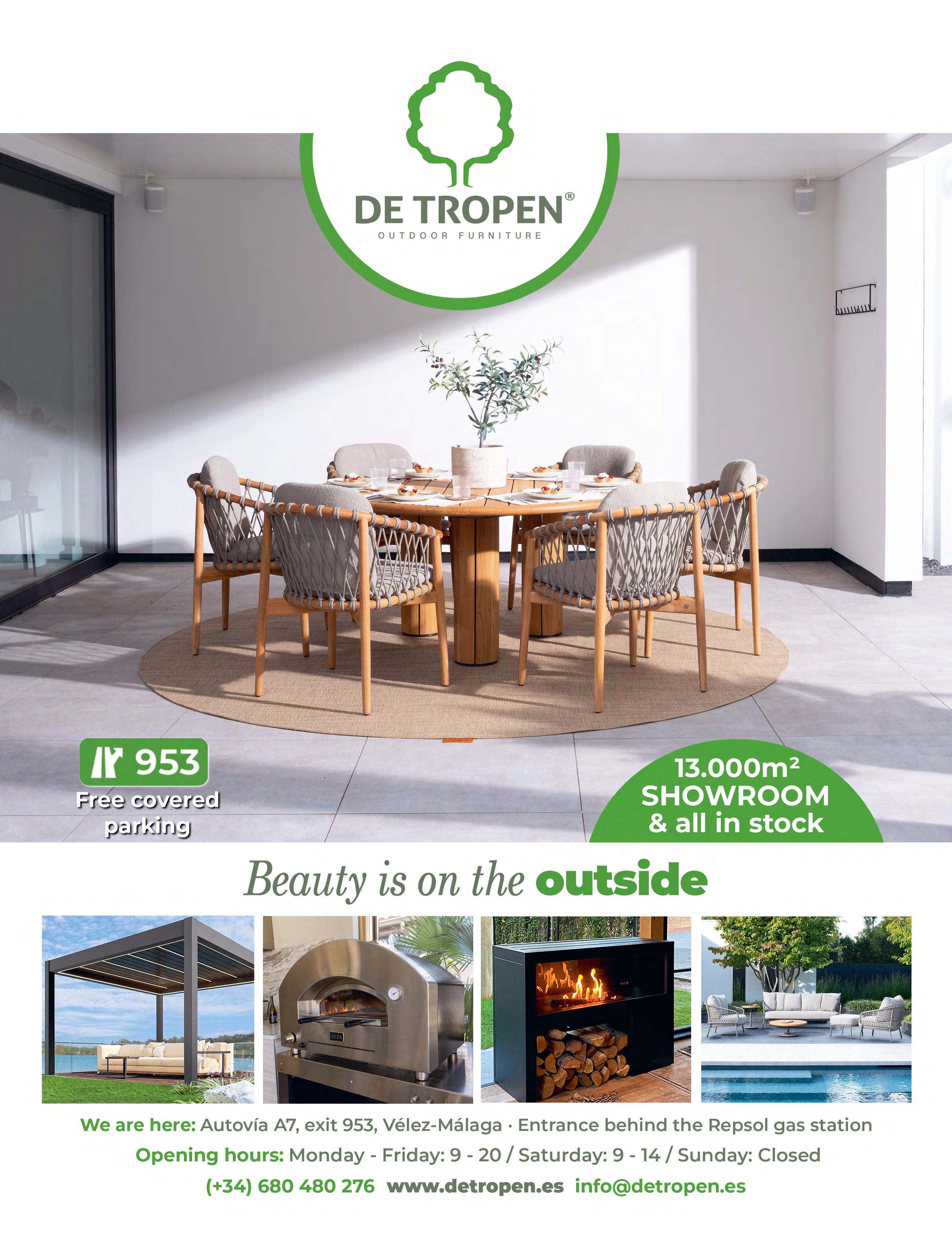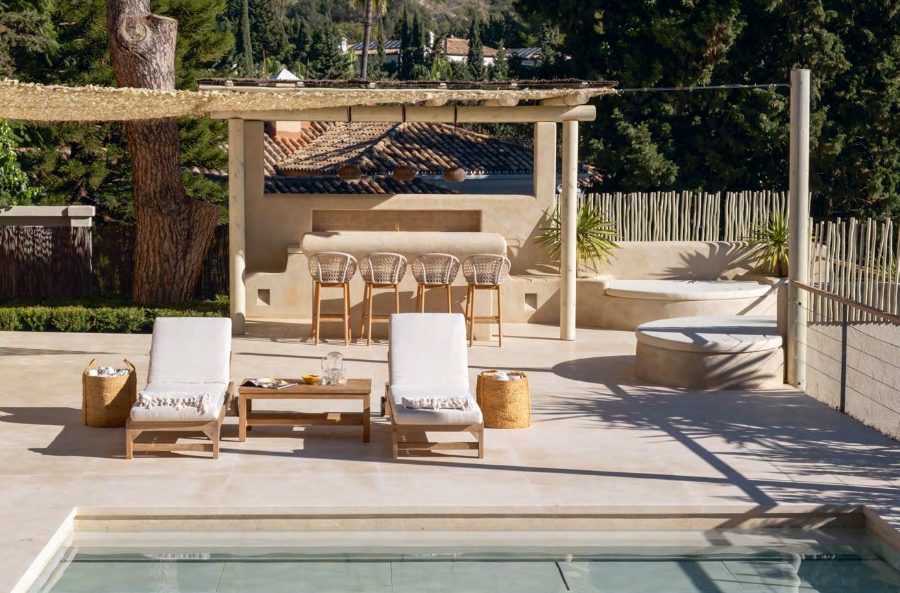 Right The new Mellow five-seater sofa by Cane-line Design is upholstered in weather-resistant AirTouch fabric and offers comfortable open seating with no armrests at each end, while the long backrest offers generous support. In the middle, the Mellow coffee table provides a functional area for drinks, snacks, or decorative items, keeping everything within arm’s reach. BoConcept Plus Store on the Mijas Road and in C. de Negocios Oasis (www.plusstore.es), as well as Fernando Moreno in Ctra. de Ronda in San Pedro de Alcántara (www.fernandomoreno.es), are both official retailers of Cane-line.