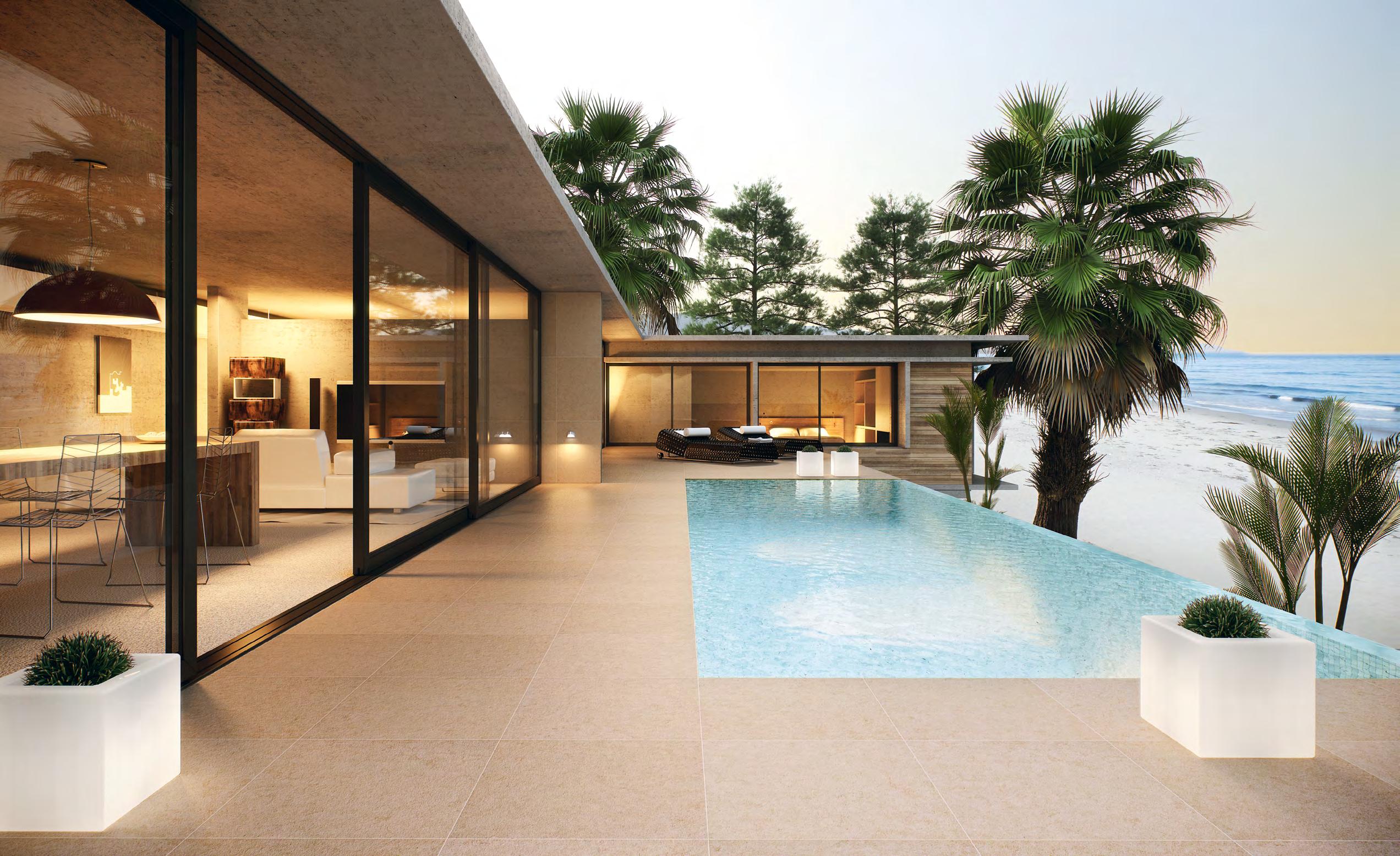 Below Dolmen ceramic tiles from Alcalagres come in beige, grey, nacre, and graphite in various finishes and formats. Contemporary and elegant, Dolmen is highly durable making it ideal for patio areas as it is nonslip, as well as stain and weather resistant. Alcalagres is available from Guadalmansa located in Estepona (www.guadalmansa.es).