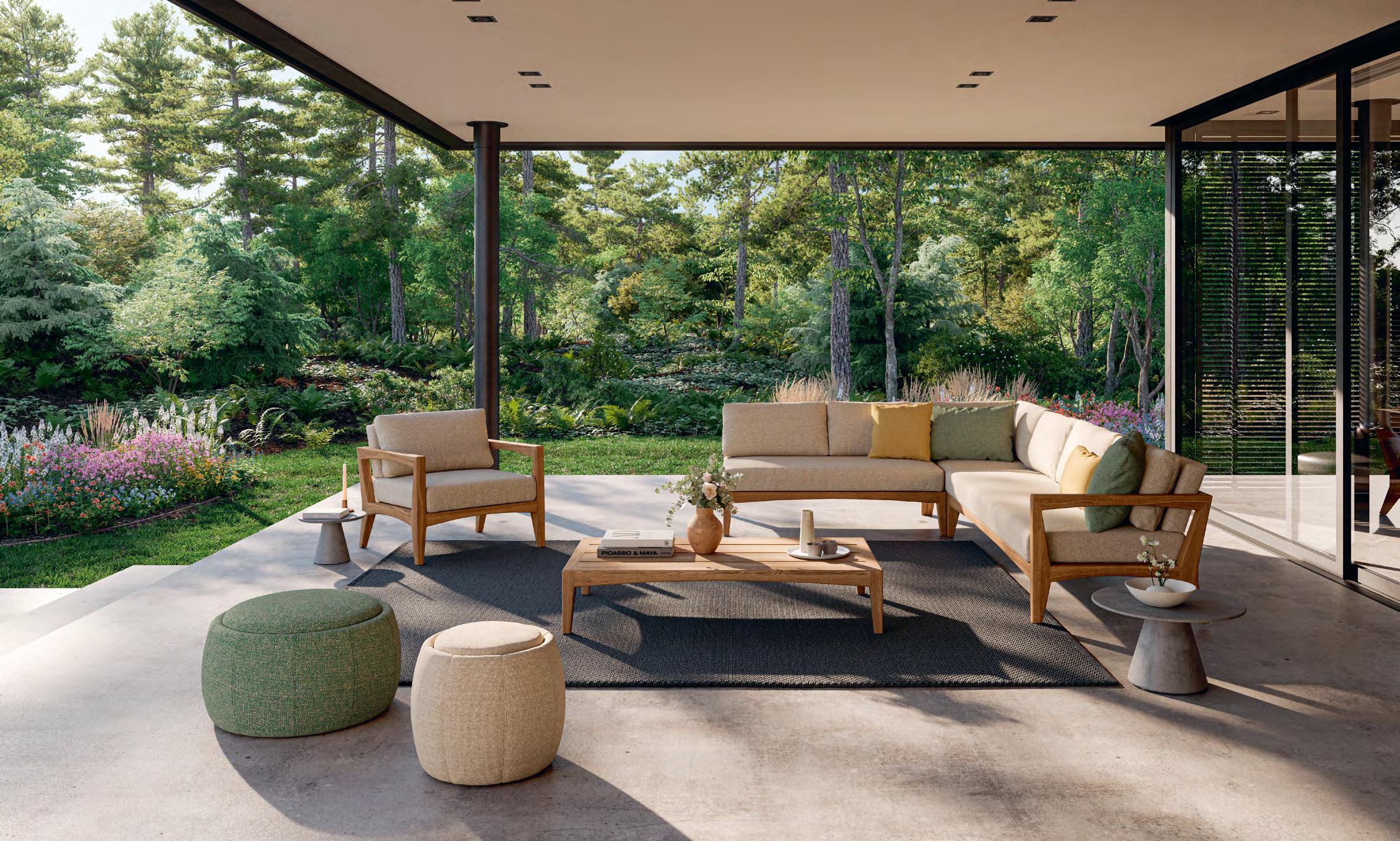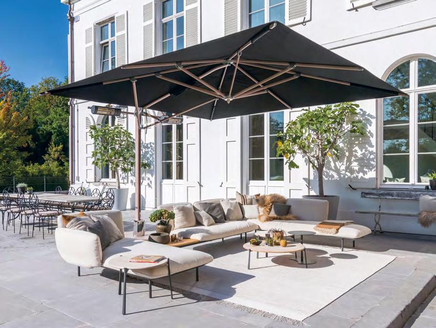 As the days start to grow longer and temperatures rise, it’s time to embrace outdoor living once again. The latest outdoor furniture collections seamlessly blend style and durability, featuring eco-friendly materials and weatherresistant fabrics that ensure both comfort and longevity. Inspired by interior design, plush armchairs and sofas bring the cosy ambiance of indoor spaces to patios and gardens, transforming them into inviting retreats. With the return of al fresco dining, stylish and comfortable tables and chairs set the scene for memorable gatherings with family and friends. And while soaking up the sun is a delight, having the right shade solutions is essential. Whether you’re looking for an affordable parasol, a sleek shade sail, a retractable awning, or a statement-making pergola, there are options to suit every budget and space. Get ready to elevate your outdoor oasis with furniture and shade solutions that combine beauty, function, and comfort.