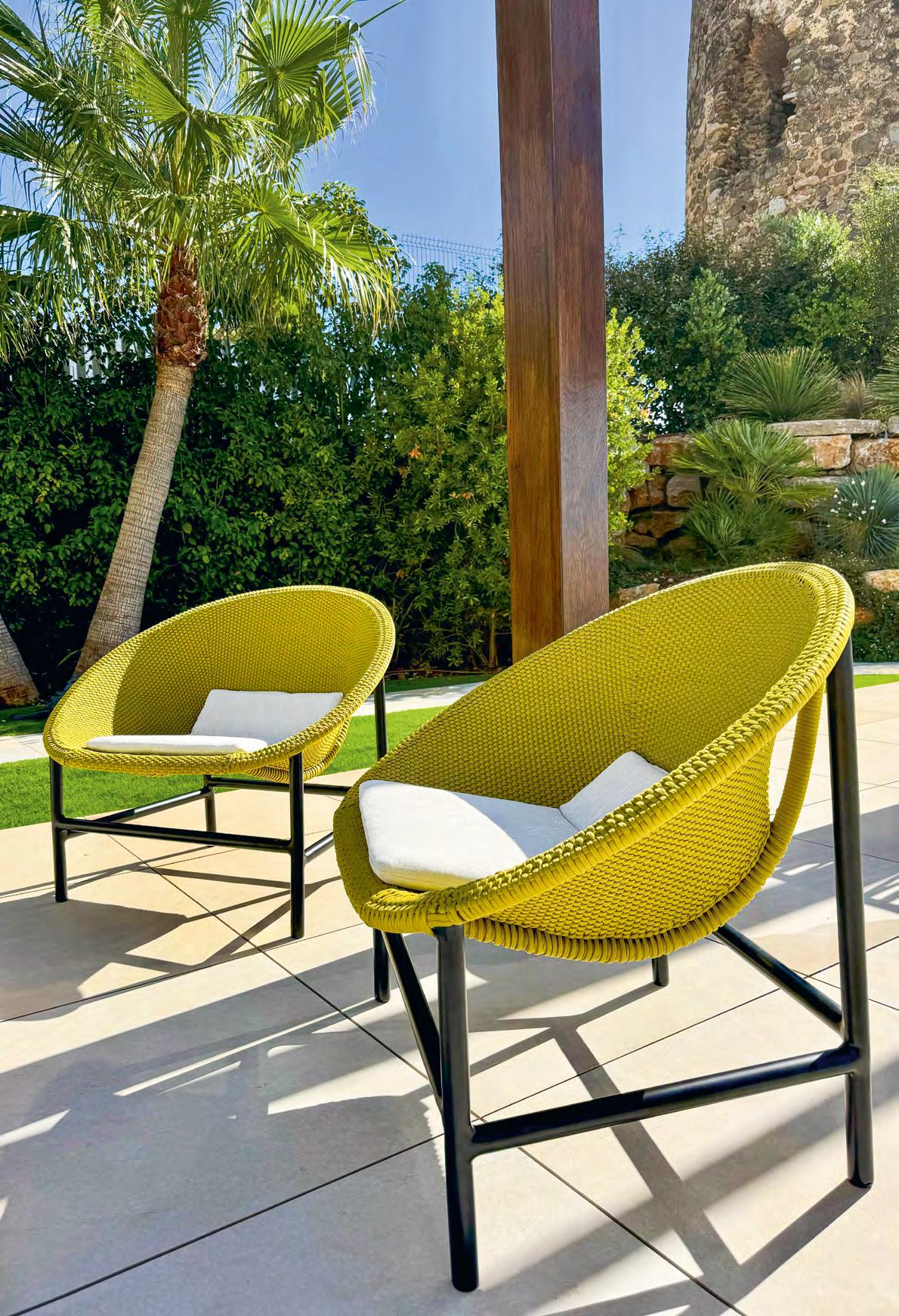Below The highly-durable Niza armchair by Isimar, also available as a stool, is made up of galvanised steel rods which are lacquered with polyester powder and are also 100 per cent recycled making them environmentally friendly. Shown here with Isimar’s Mykonos table. Isimar is available from Acoola in Pol. Ind. San Pedro de Alcántara (www.acoola.eu) and through Outdoor Concepts at the top of the Boulevard in San Pedro de Alcántara (www.outdoorconcepts.es).