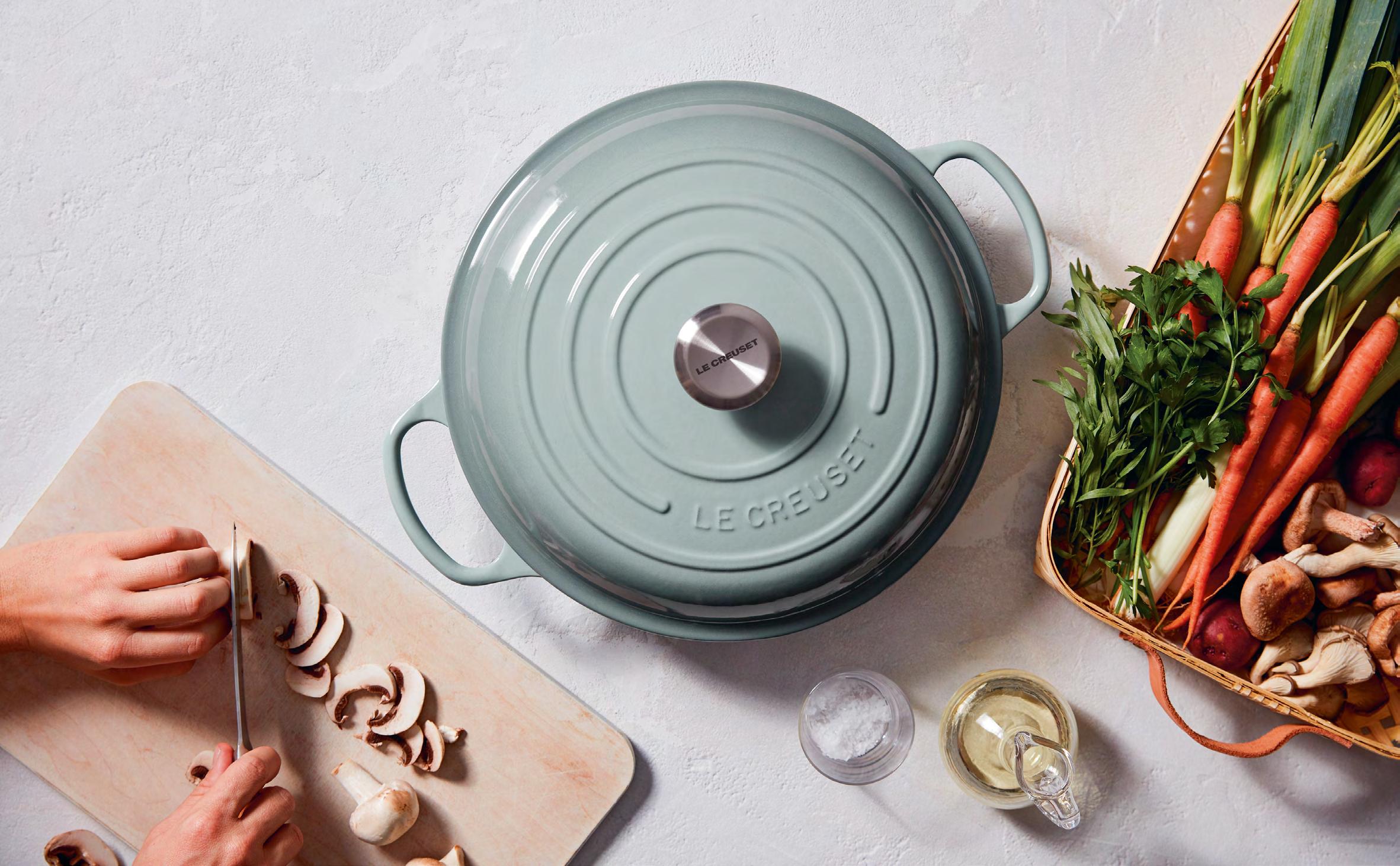 Below This cast-iron casserole dish by Le Creuset comes in a range of colours, shown here in the Sea Salt option. It is highly durable, locks-in moisture, and comes with useful handles so it can be carried easily to the table. Available directly from Escandi Design on the Mijas Road or buy online at www.escandidesign.com