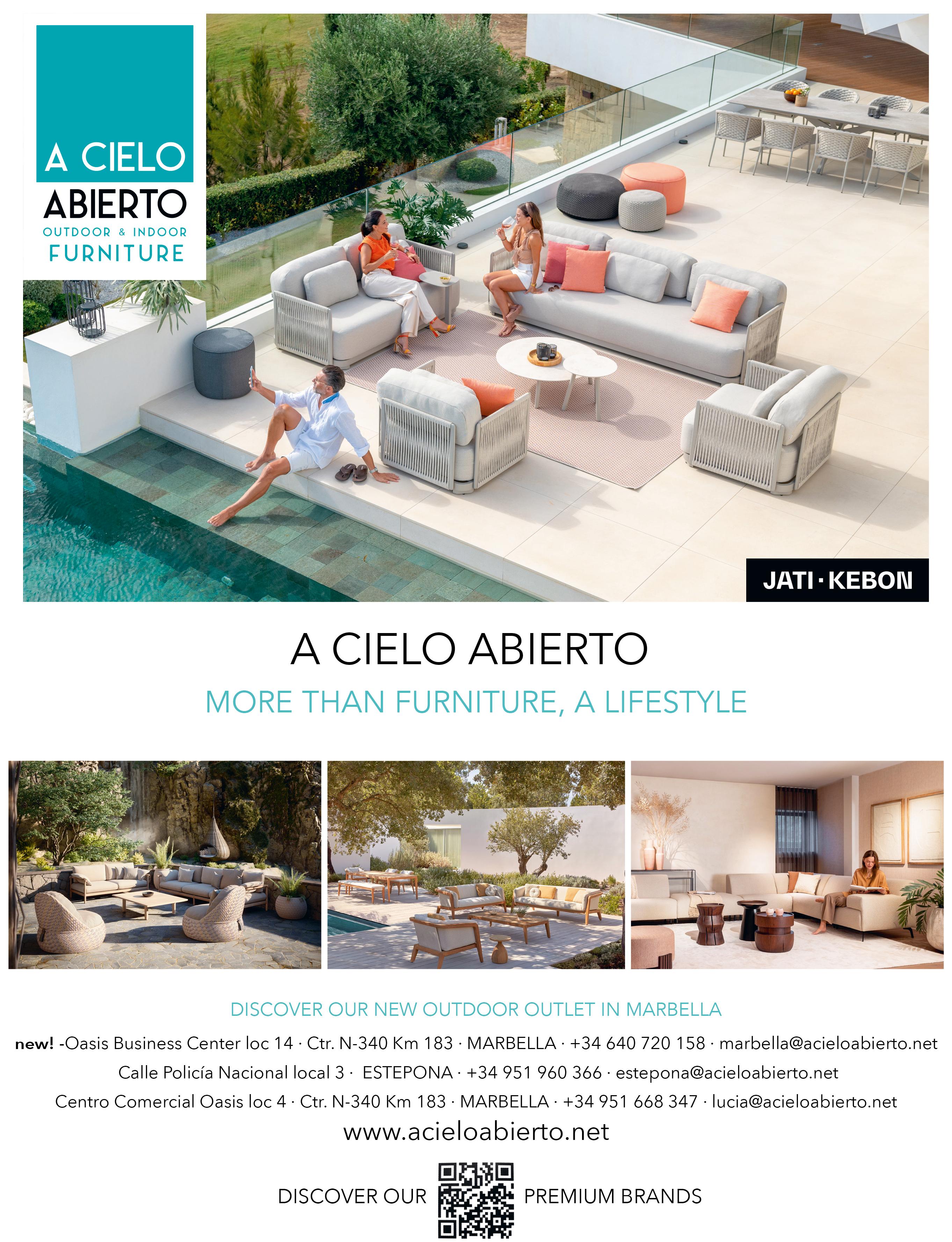 Combining sculptural design with gentle motion, Cane-line’s Hive offers a serene retreat suspended in air. Its open, cocoon-like weave creates a sense of shelter without sacrificing lightness, making it perfect for moments of calm, indoors or out. BoConcept Plus Store on the Mijas Road and in C. de Negocios Oasis (www.plusstore.es) and Fernando Moreno on C/ Gorrión in San Pedro de Alcántara (www.fernandomoreno.es) are official retailers of Cane-line.